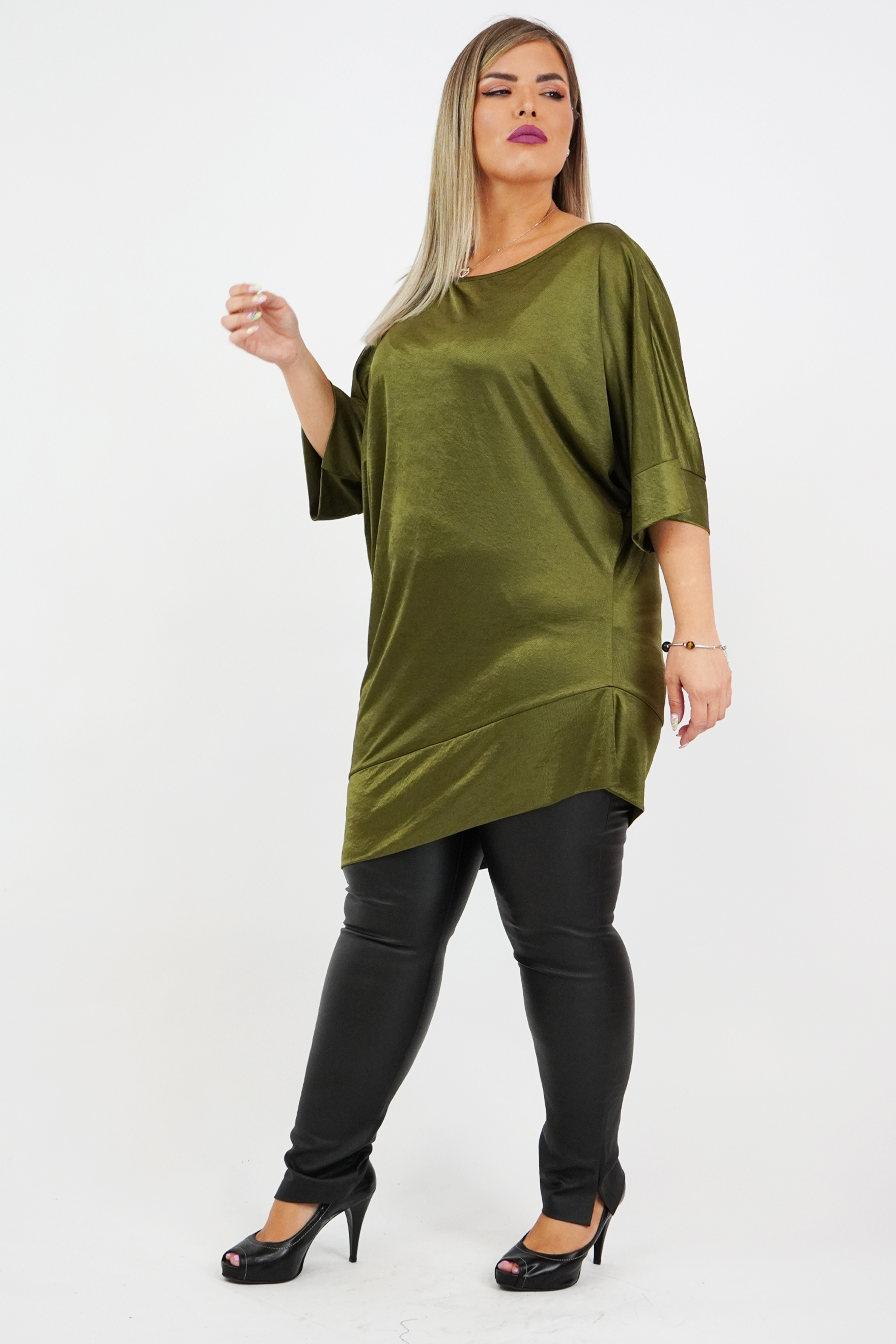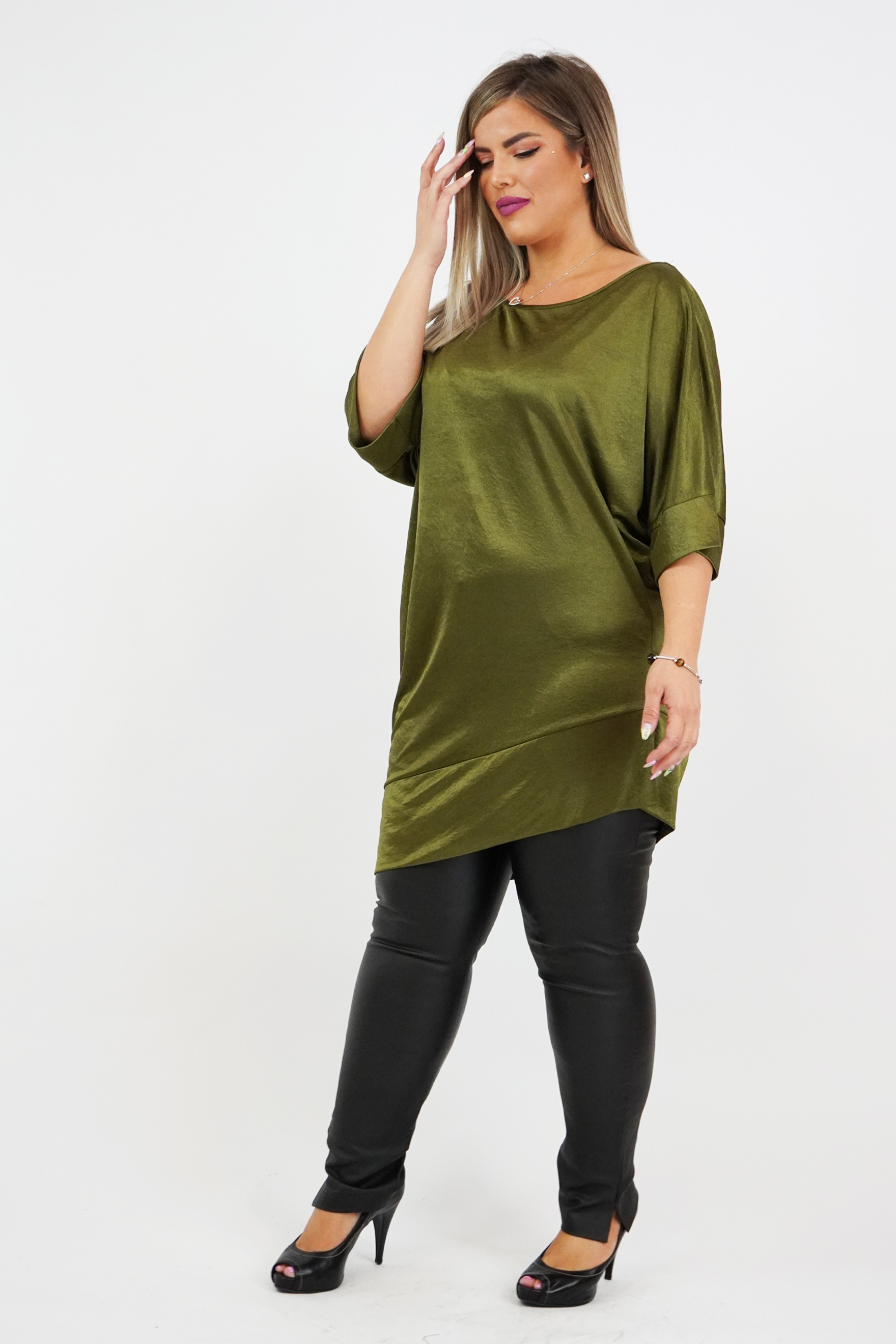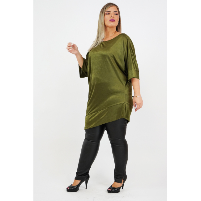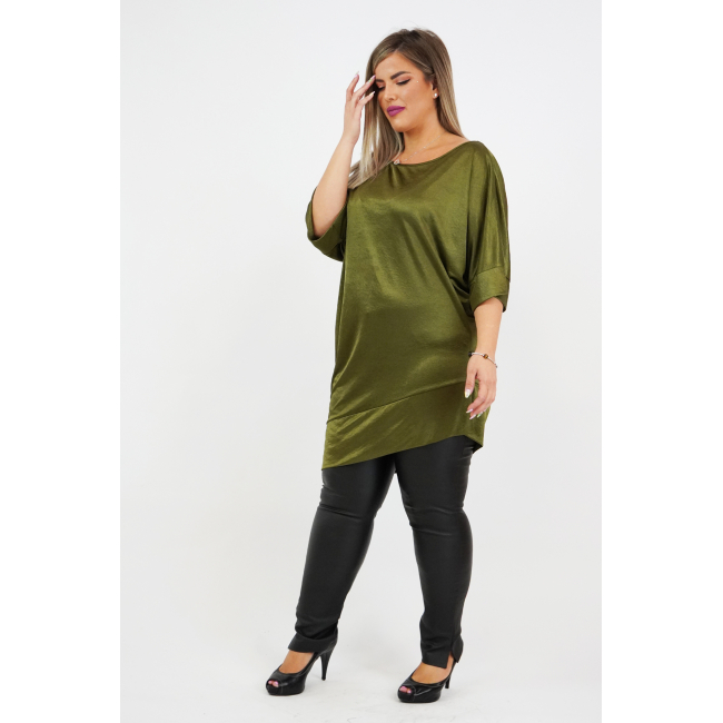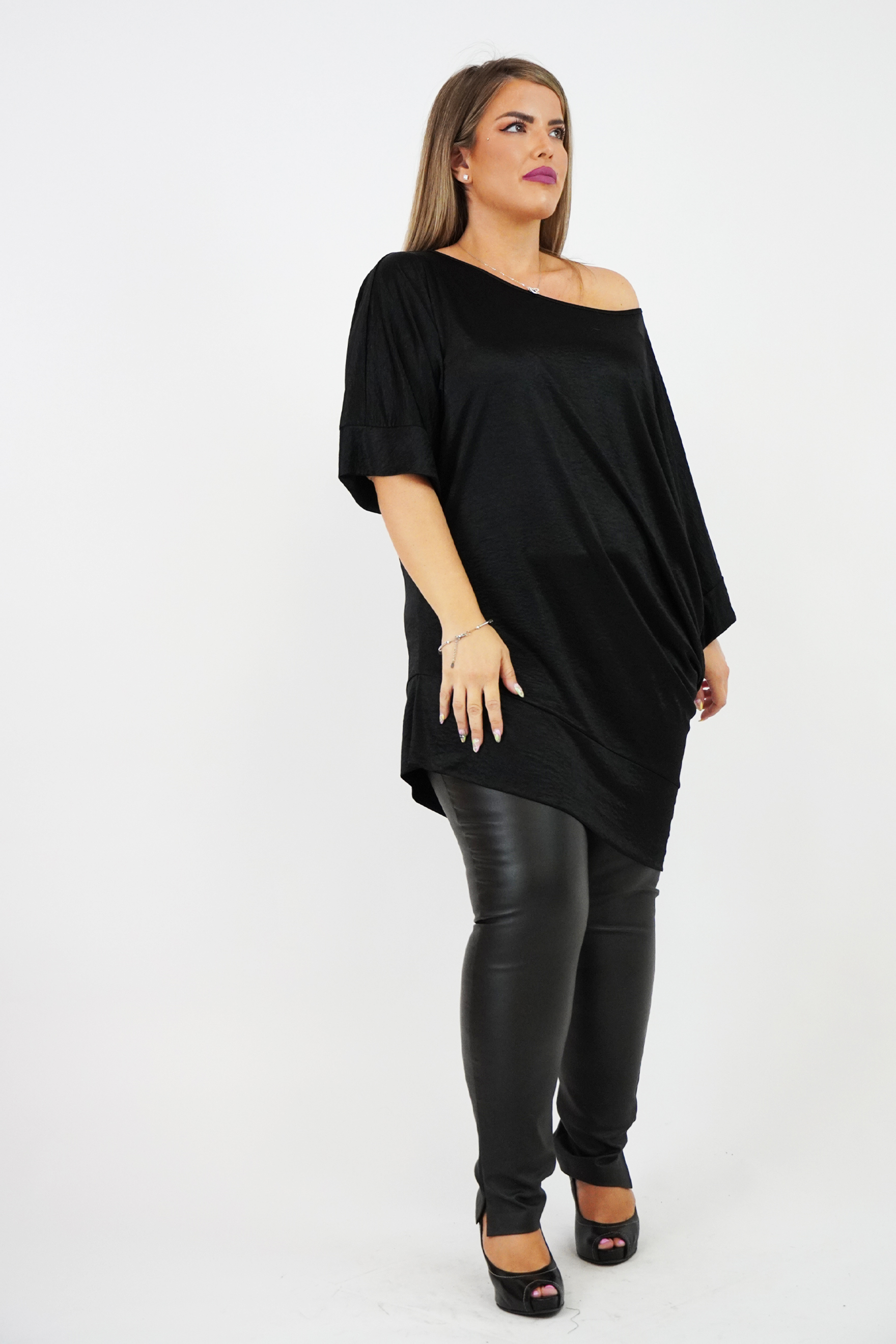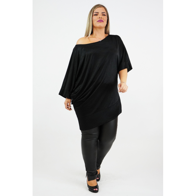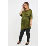 Μπλουζοφόρεμα Bodre elastan, ανοιχτή λαιμόκοψη σε στυλ "χαμόγελο", ζαπονέ τρουακάρ μανίκια, μπάσκα στο κάτω μέρος, σε ίσια άνετη γραμμή.