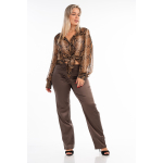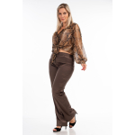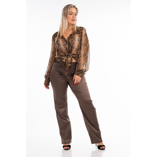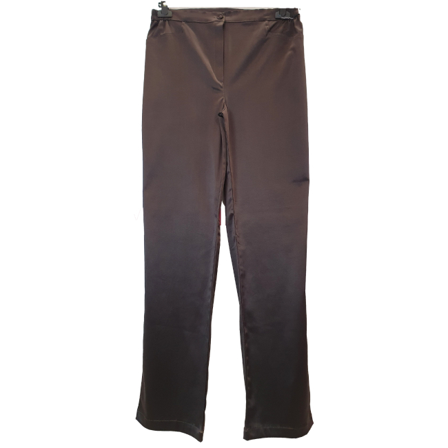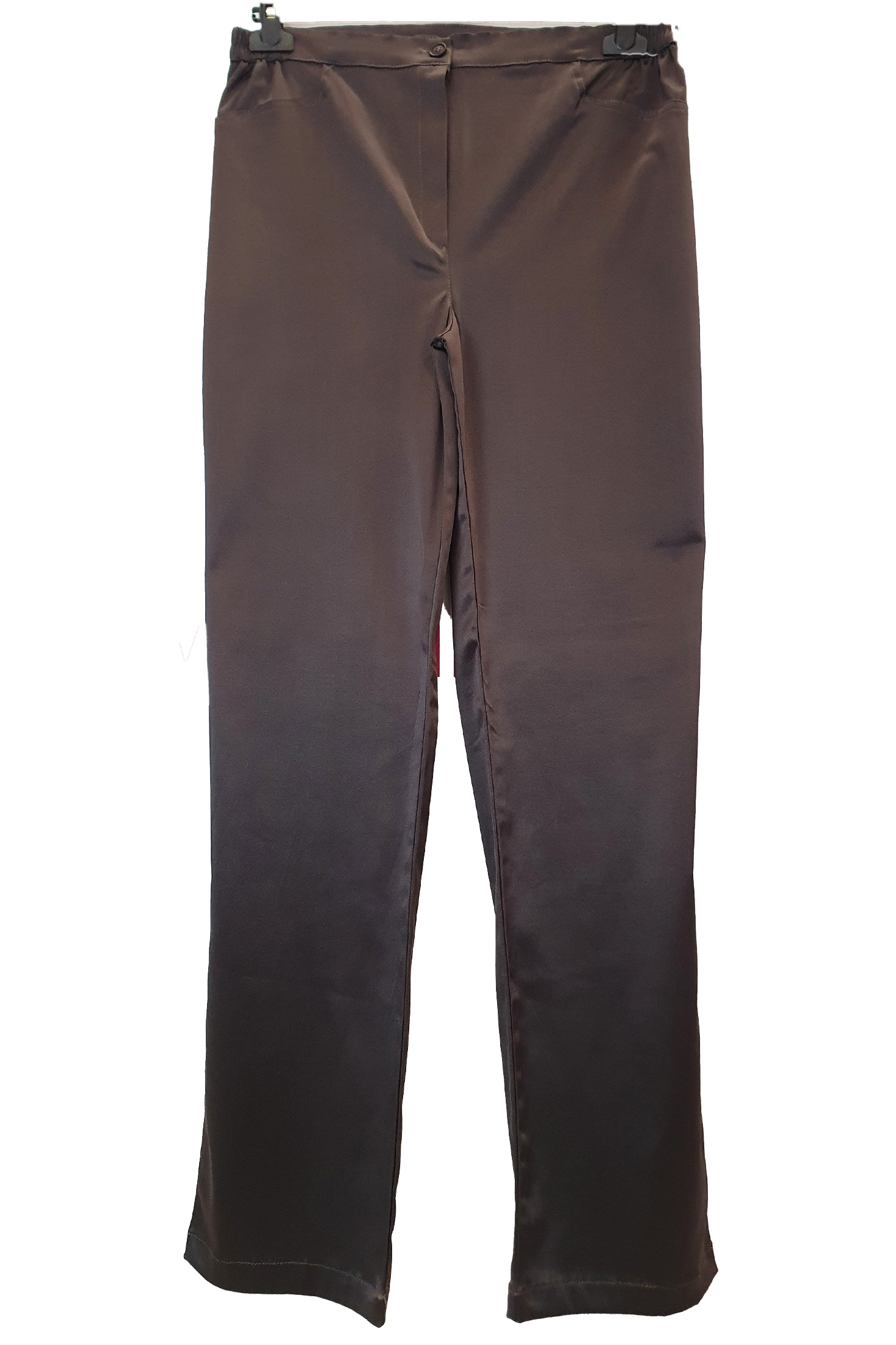Παντελόνι σατέν, σε στυλ "5τσεπου", ζωνάκι με λάστιχο στα πλαΪνα, φερμουάρ, κουμπί, σε ίσια πολύ άνετη γραμμή