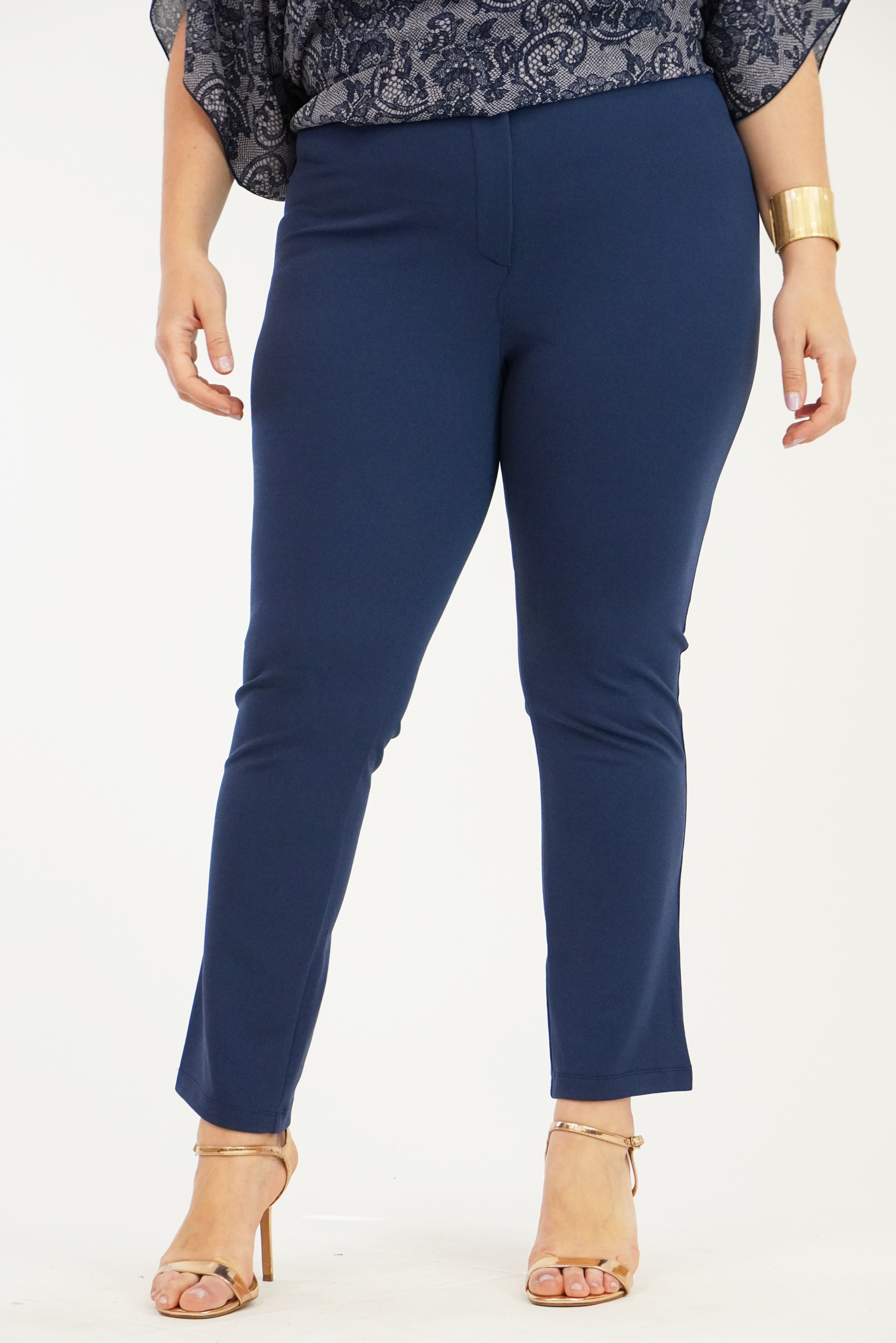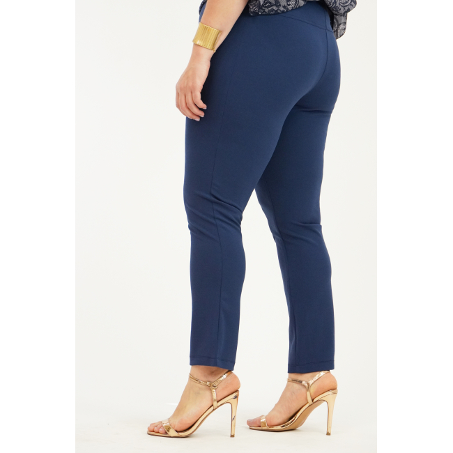 Παντελόνι scuba crep ύφασμα, ζωνάκι, κουμπί, φερμουάρ εμπρός και διακριτικό λάστιχο στα πλαϊνα, μπάσκα στο πίσω μέρος, σε ίσια γραμμή με μεγάλη ελαστικότητα.
