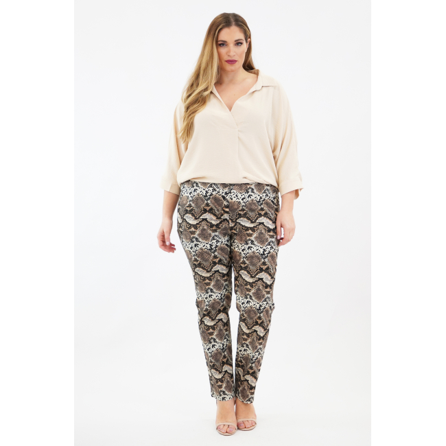 Παντελόνι Αnimal Print, σταθερό πανί, ζωνάκι στη μέση, κουμπί, φερμουάρ και διακριτικό λαστιχο στα πλαϊνα για καλύτερη εφαρμογή, σε ίσια γραμμή