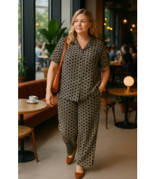 Παντελόνι/Κολάν, σε Stretch ανάγλυφο/ανορθωτικό ύφασμα βαμβακερό, υπέροχη υφή, λάστιχο 2cm στη μέση, τσέπες πίσω, διακριτικό σκίσιμο στο τελείωμα του παντελονιού με 3 κουμπιά.