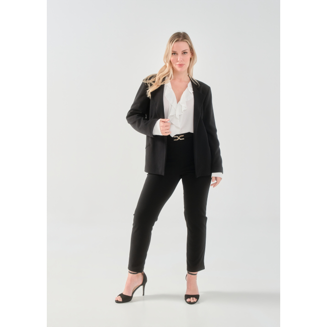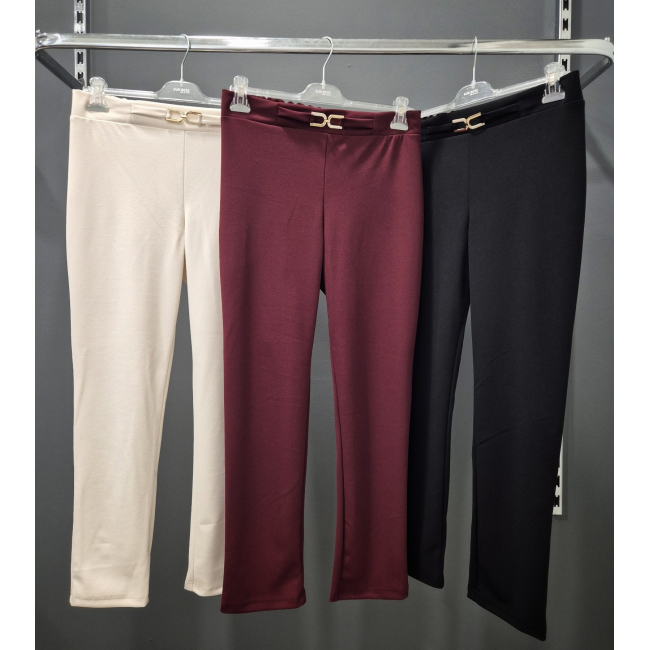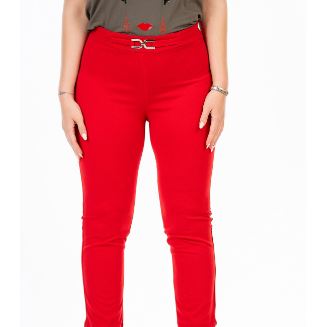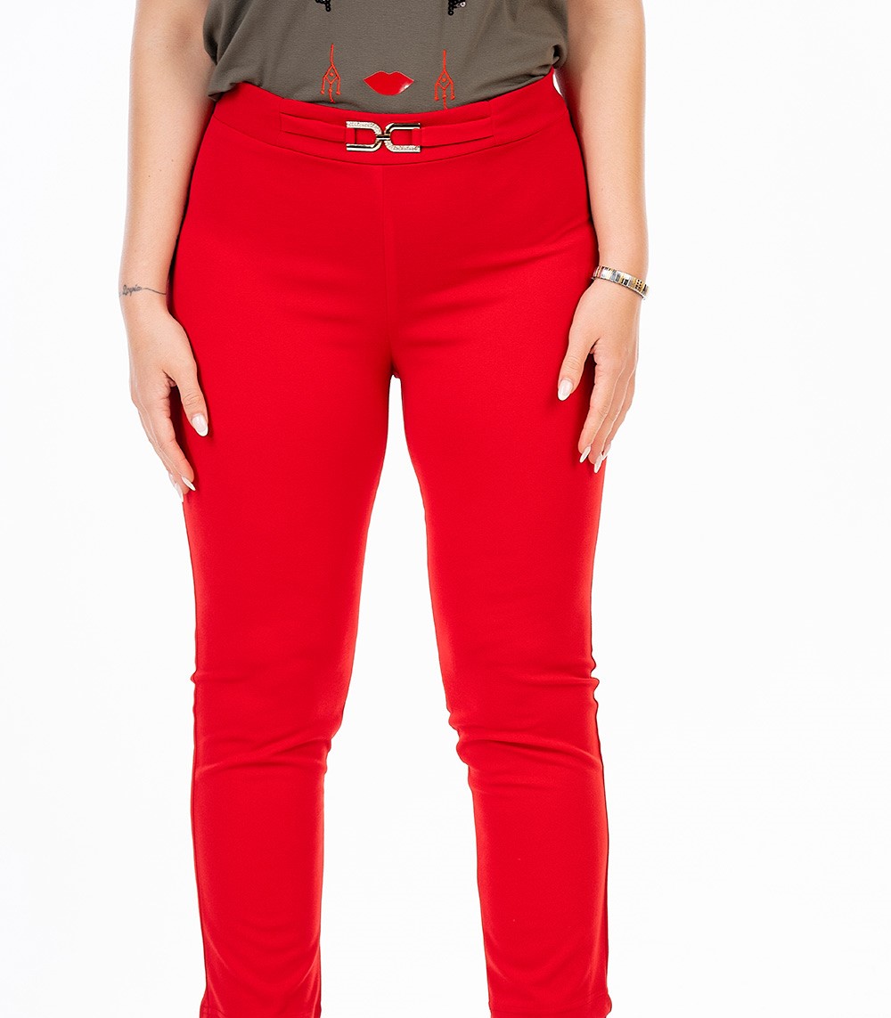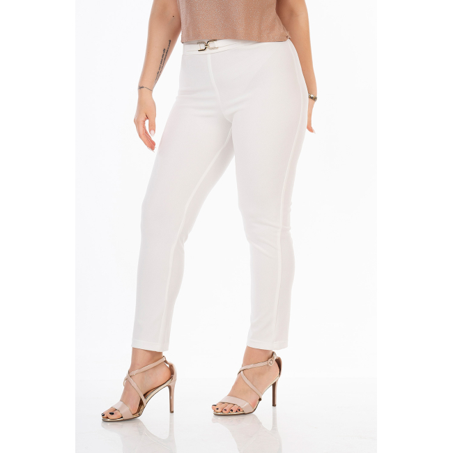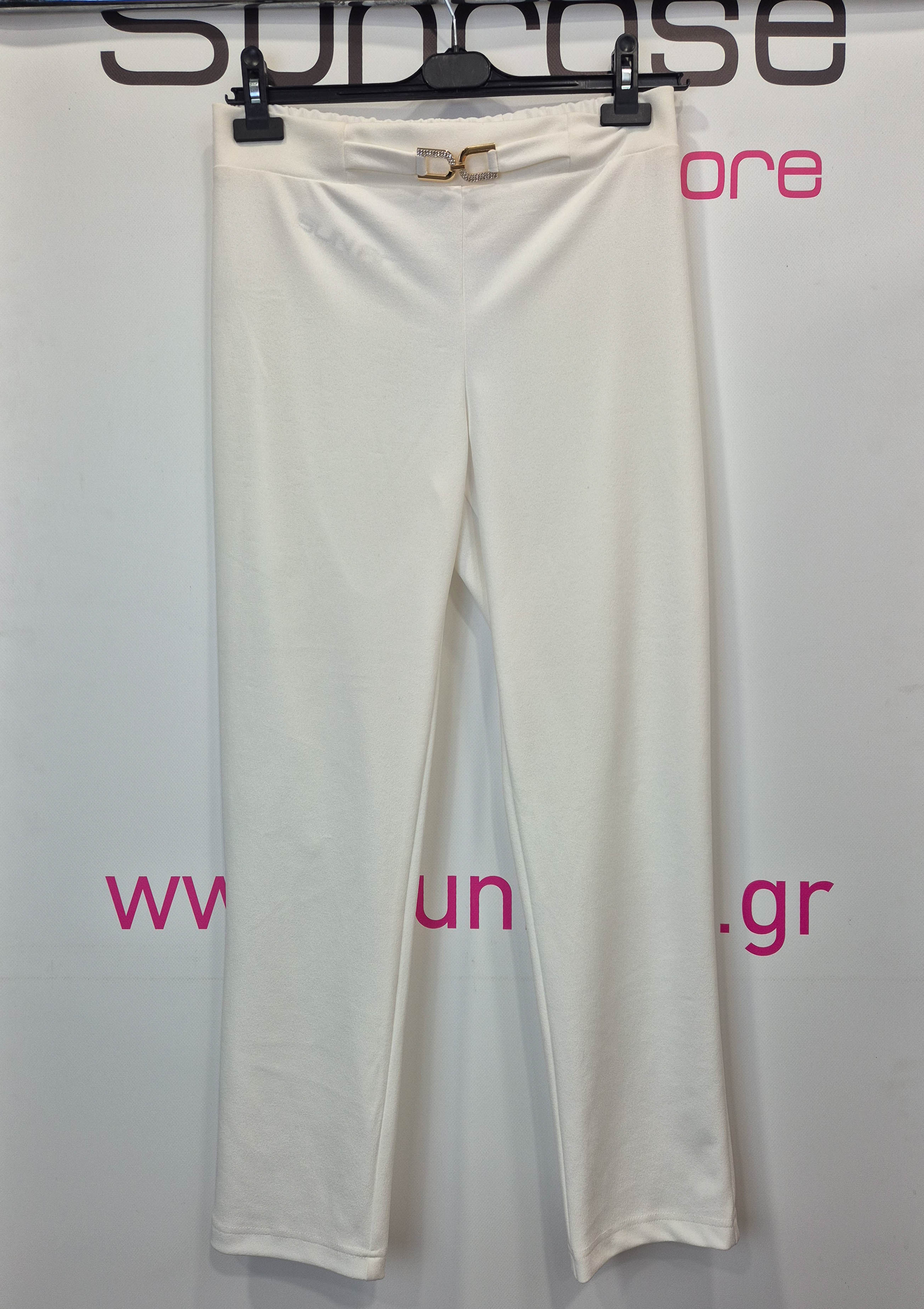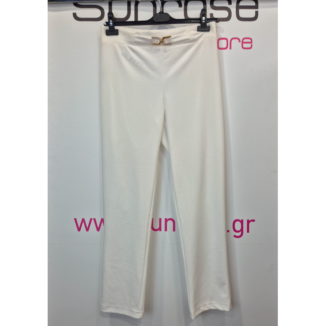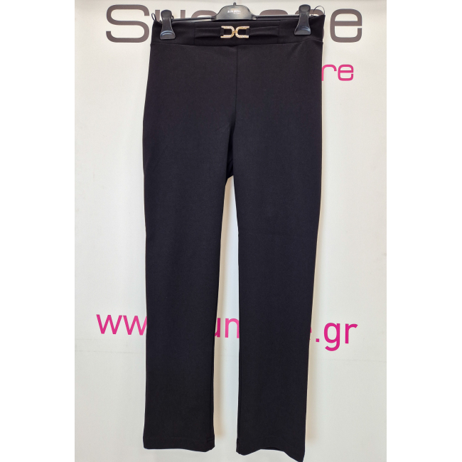 Παντελόνι σε scuba crep ελαστικό ύφασμα, ψηλόμεσο, μικρή μπάσκα στην μέση με διακοσμητική αγκράφα, σε ίσια πολύ άνετη γραμμή