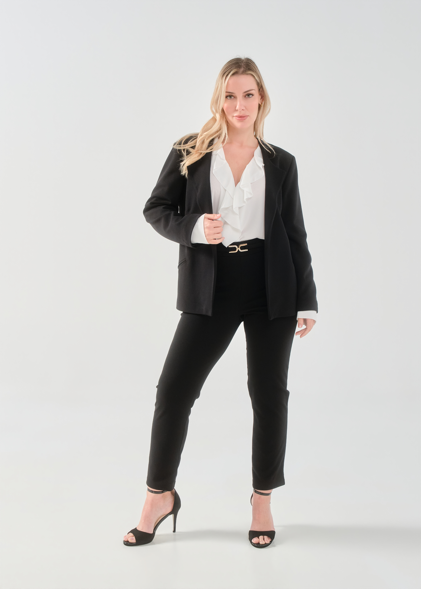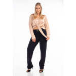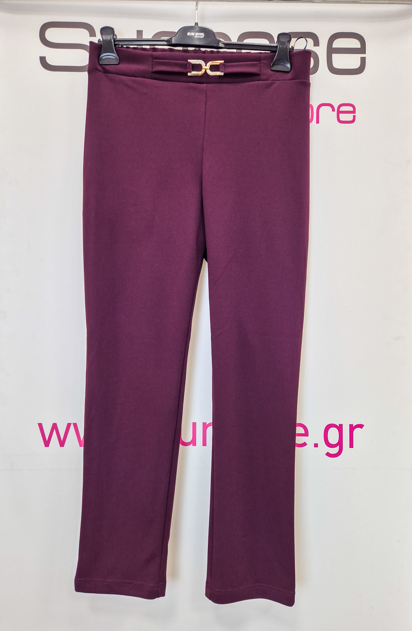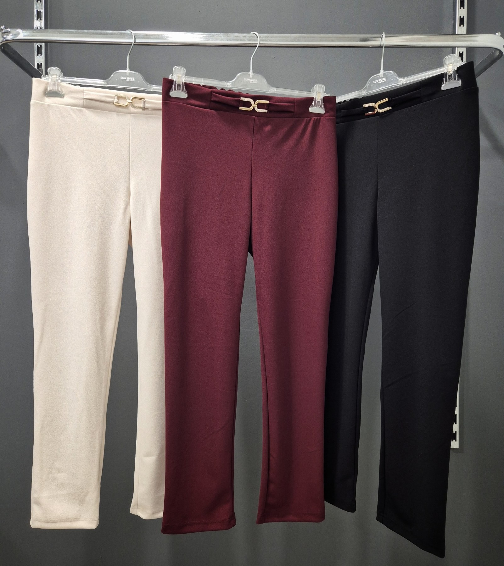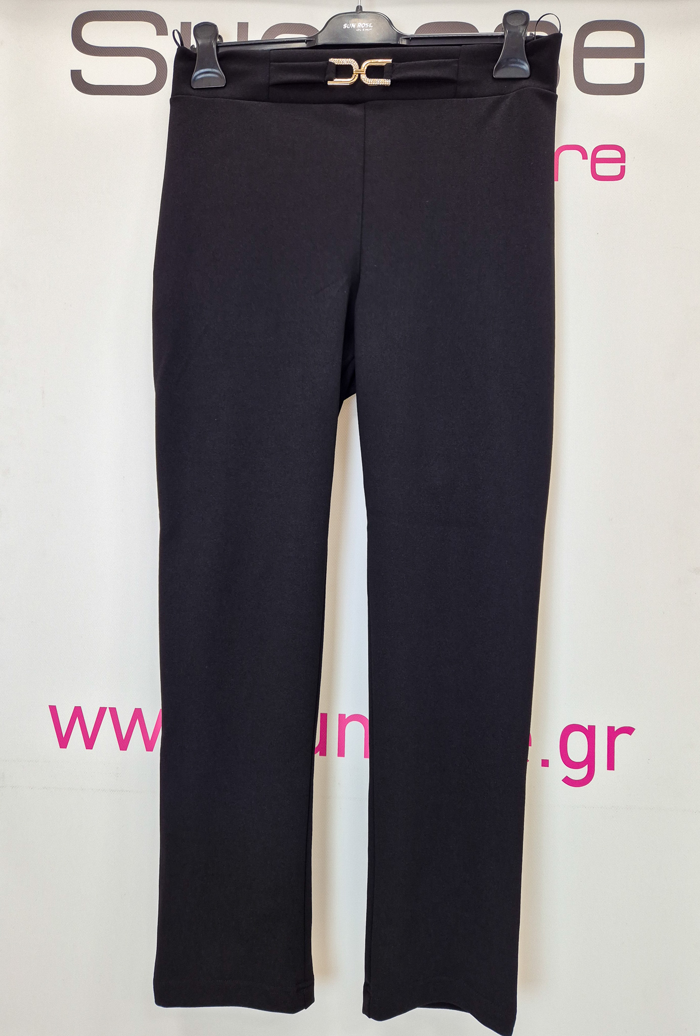 Παντελόνι σε scuba crep ελαστικό ύφασμα, ψηλόμεσο, μικρή μπάσκα στην μέση με διακοσμητική αγκράφα, σε ίσια πολύ άνετη γραμμή