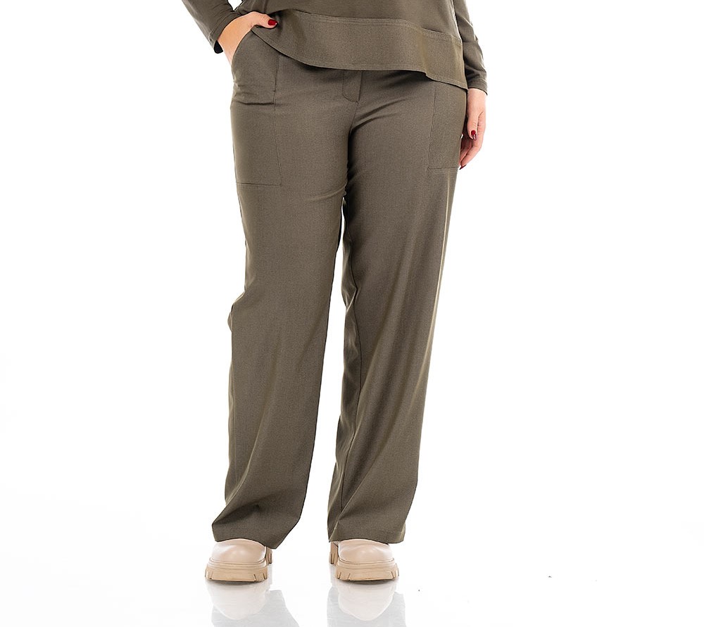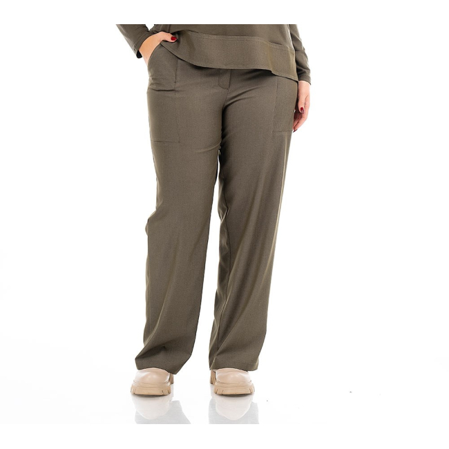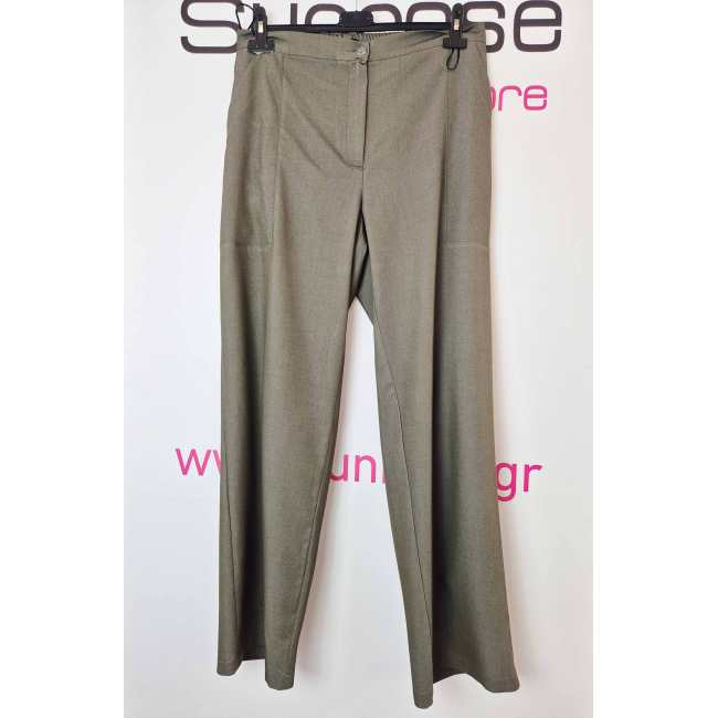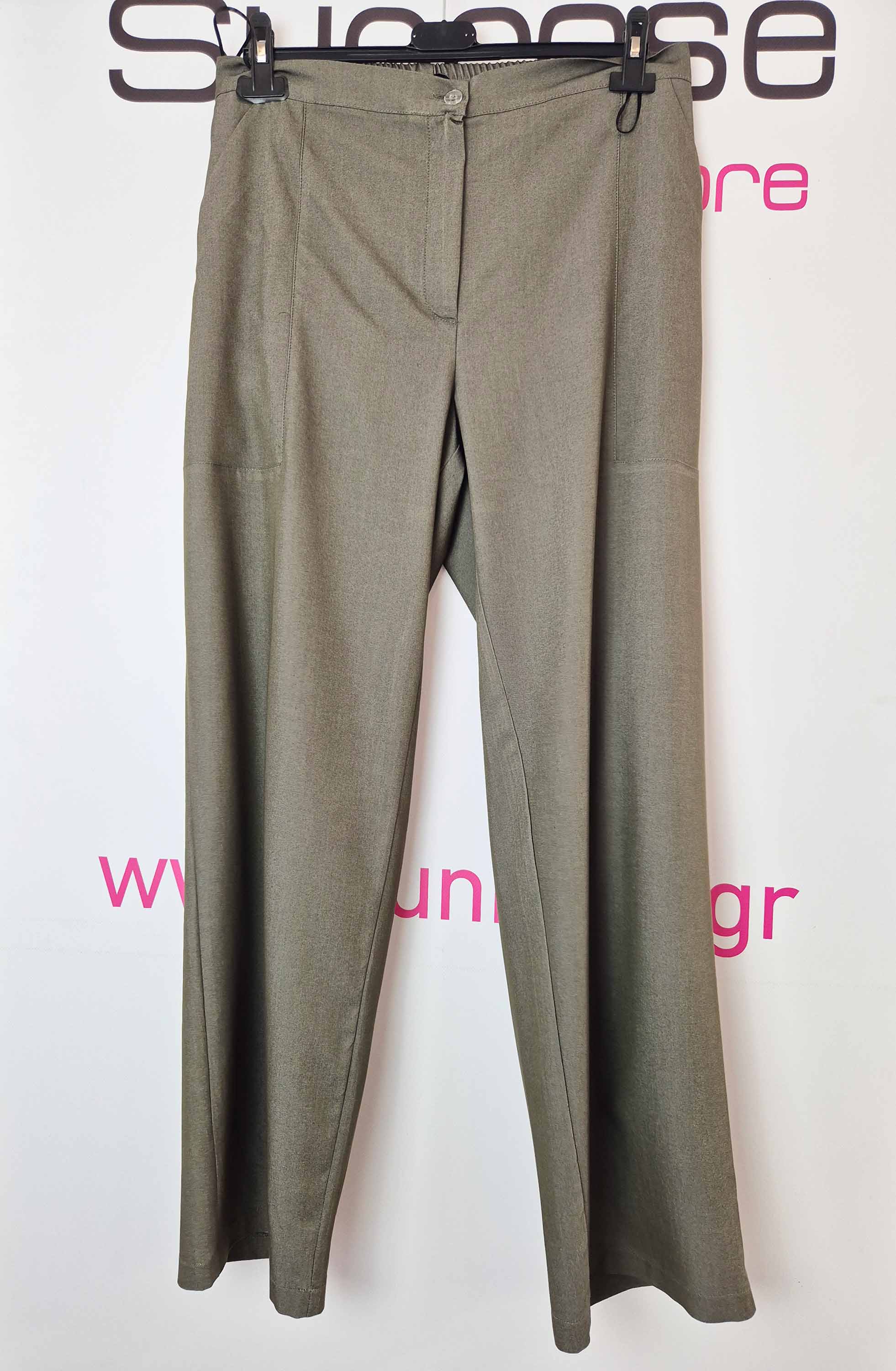Παντελόνι σε ελαστικό βαμβακερό ύφασμα (τύπου Jean), ζωνάκι, κουμπί, φερμουάρ, λάστιχο πίσω, φιλέτο διαγώνιες τσέπες μπροστά, σε ίσια φαρδιά γραμμή