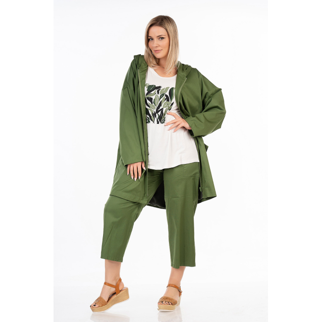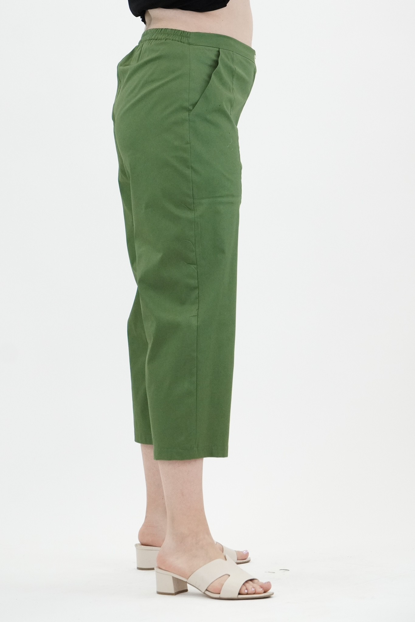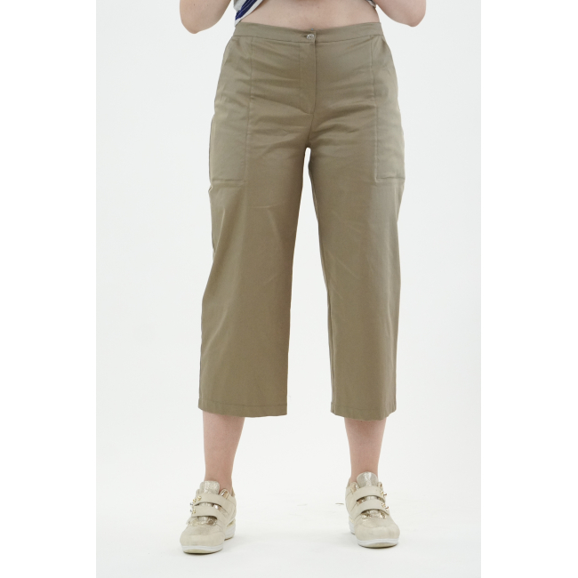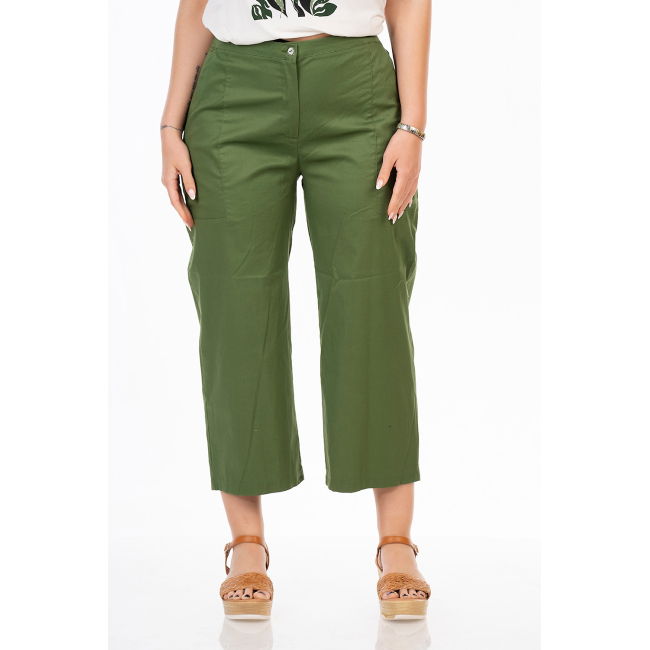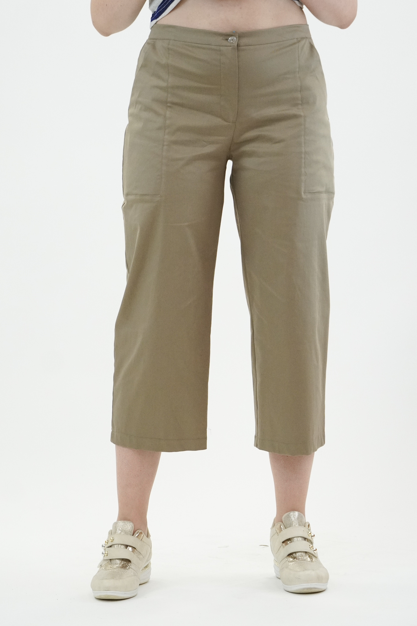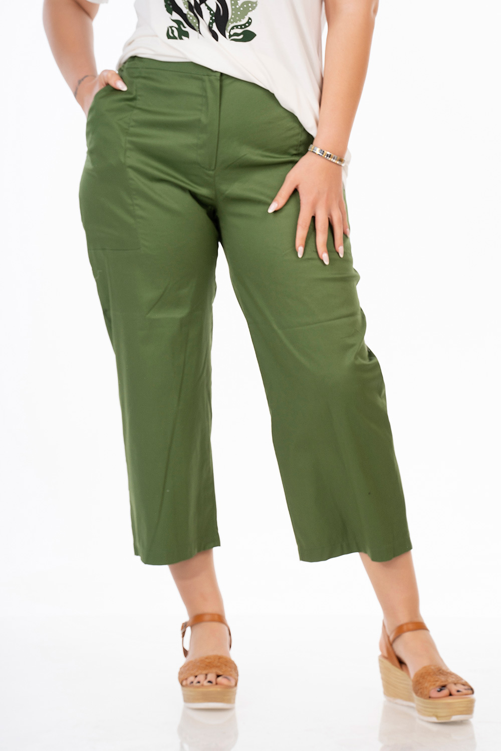 Παντελόνι αστραγάλου σε loose άνετη γραμμή, βαμβακερό ελαστικό ύφασμα, ζωνάκι με λάστιχο στο πίσω μέρος, κουμπί, φερμουάρ, φιλέτο τσέπες στα πλαϊνά. (85% cotton & 15% elastan)