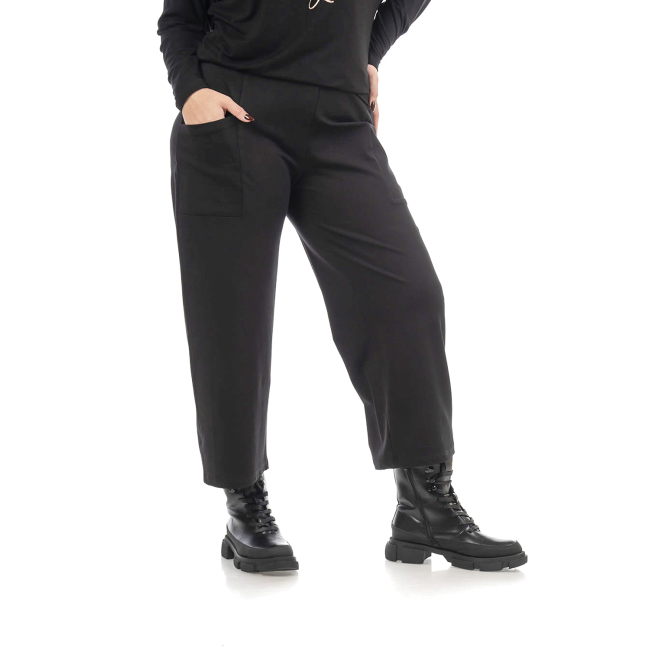 Παντελόνι ψαράδικο σε χοντρό Viscose ύφασμα, ζωνάκι και λάστιχο στην μέση, φιλέτο εξωτερικές τσέπες στα πλαϊνα, σε ίσια φαρδιά γραμμή