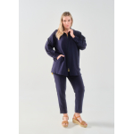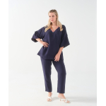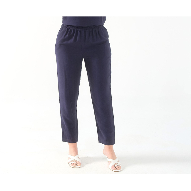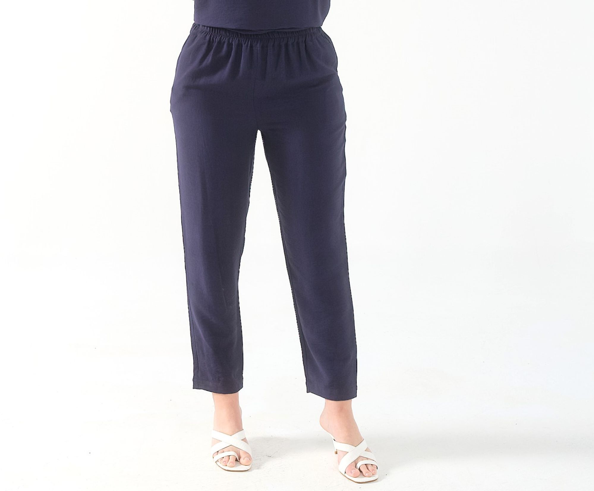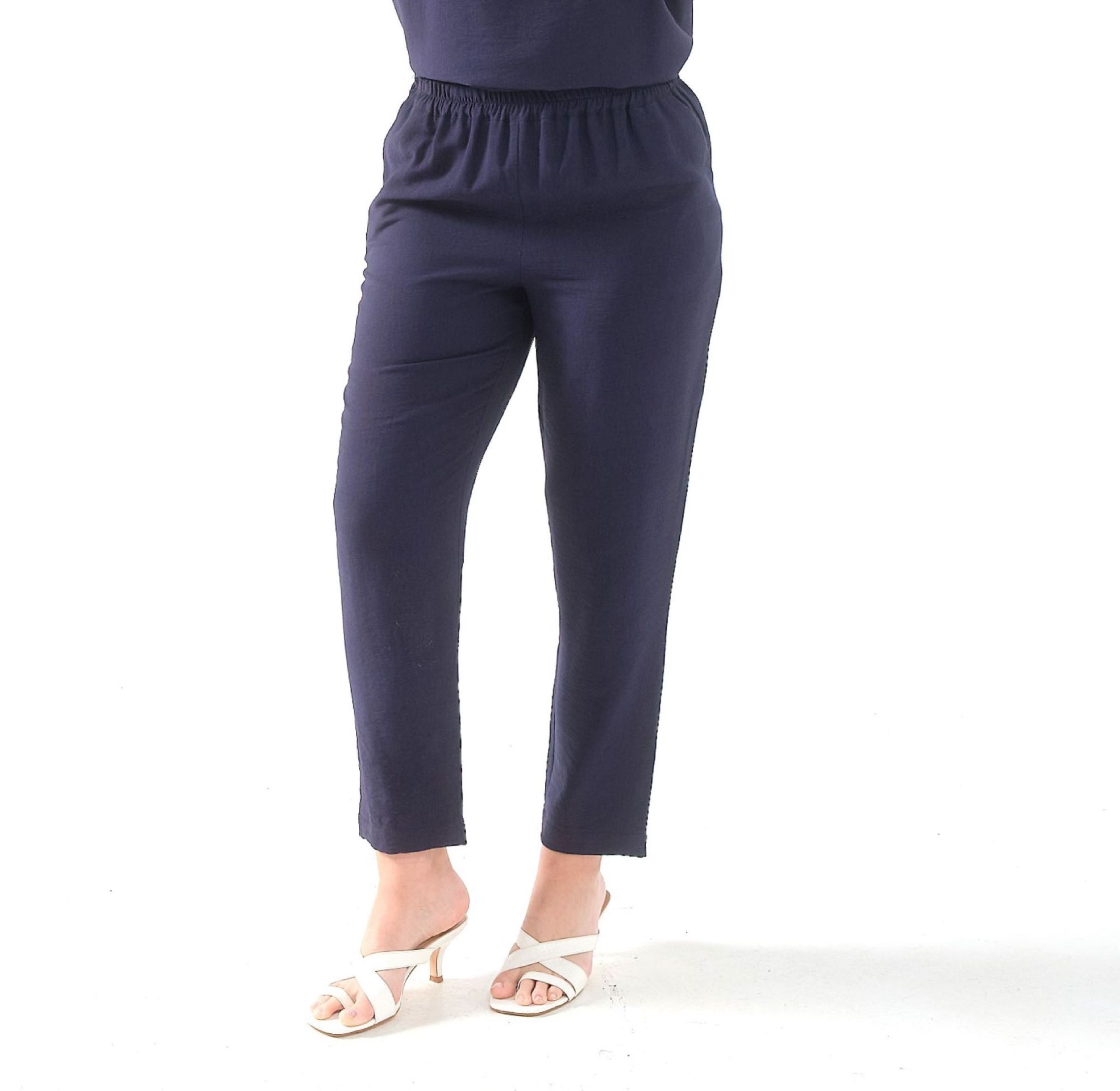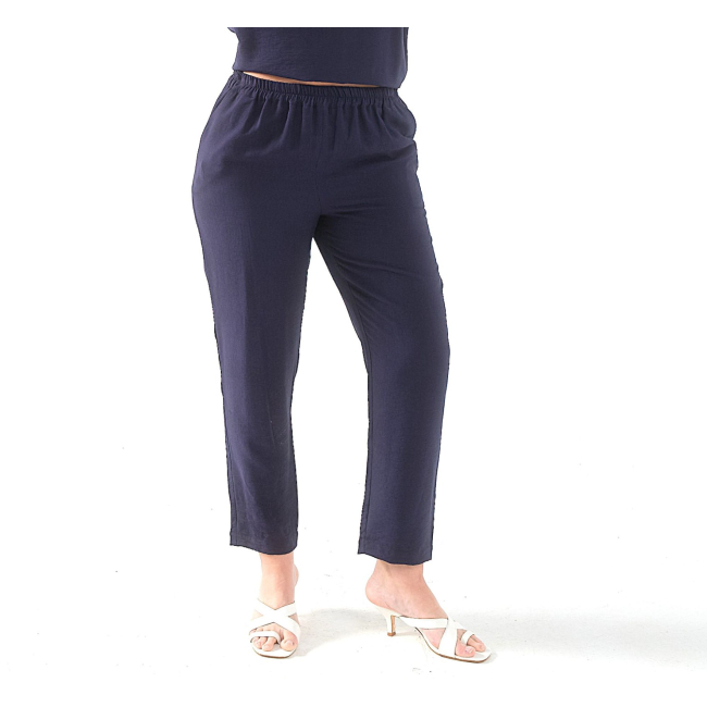 Παντελόνι σε επεξεργασμένο Λινό με λάστιχο στην μέση, φιλέτο εσωτερικές τσέπες, σε ίσια γραμμή