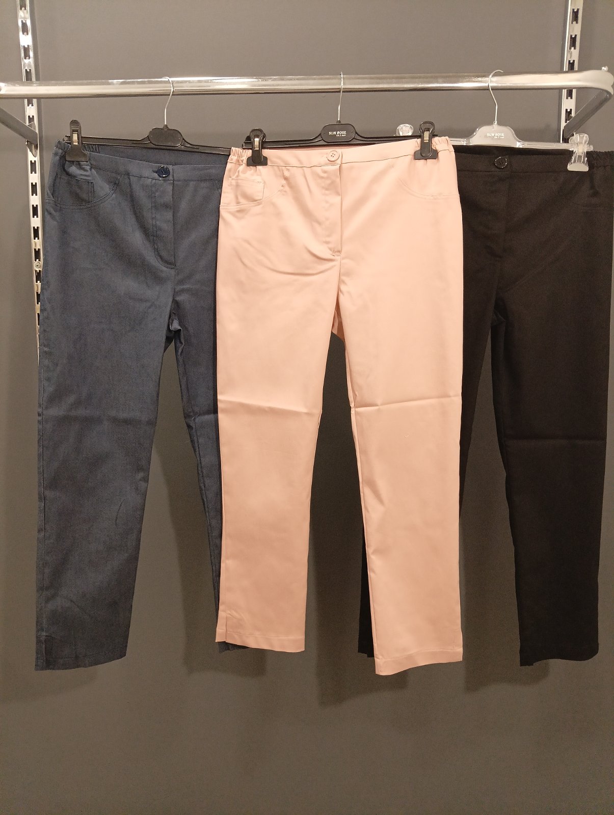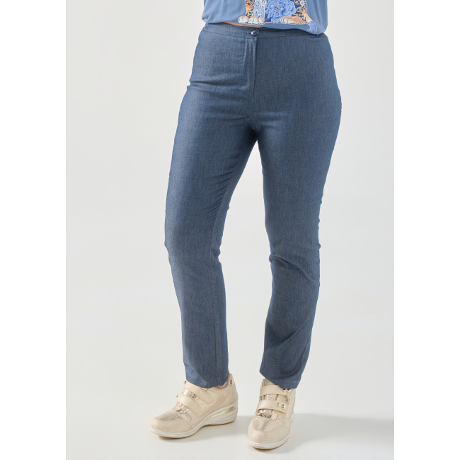 Παντελόνι σε Jean (100% cotton) ελαστικό ύφασμα, ζωνάκι με λάστιχο στα πλαϊνά για καλύτερη εφαρμογή, κουμπί, φερμουάρ, τσέπες πίσω, σε ίσια πολύ άνετη γραμμή