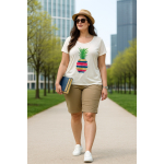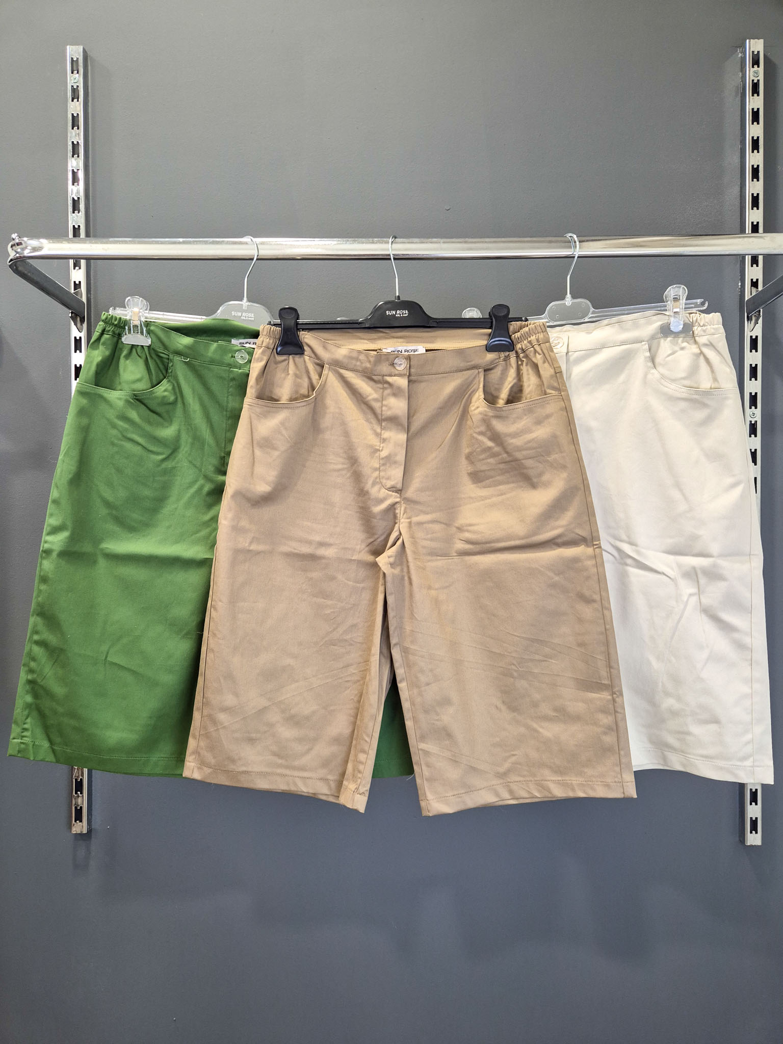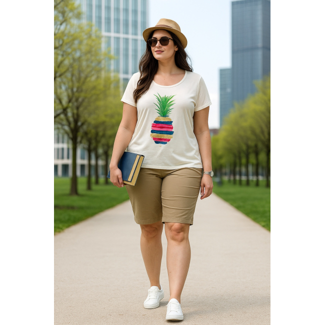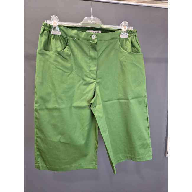 Βερμούδα σε βαμβακερή ποπλίνα σε στυλ "5τσέπο", κουμπί, φερμουάρ, ζωνάκι με λάστιχο στα πλαϊνά για καλύτερη εφαρμογή, τσέπες πίσω και μπροστά, σε ίσια πολύ άνετη γραμμή