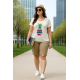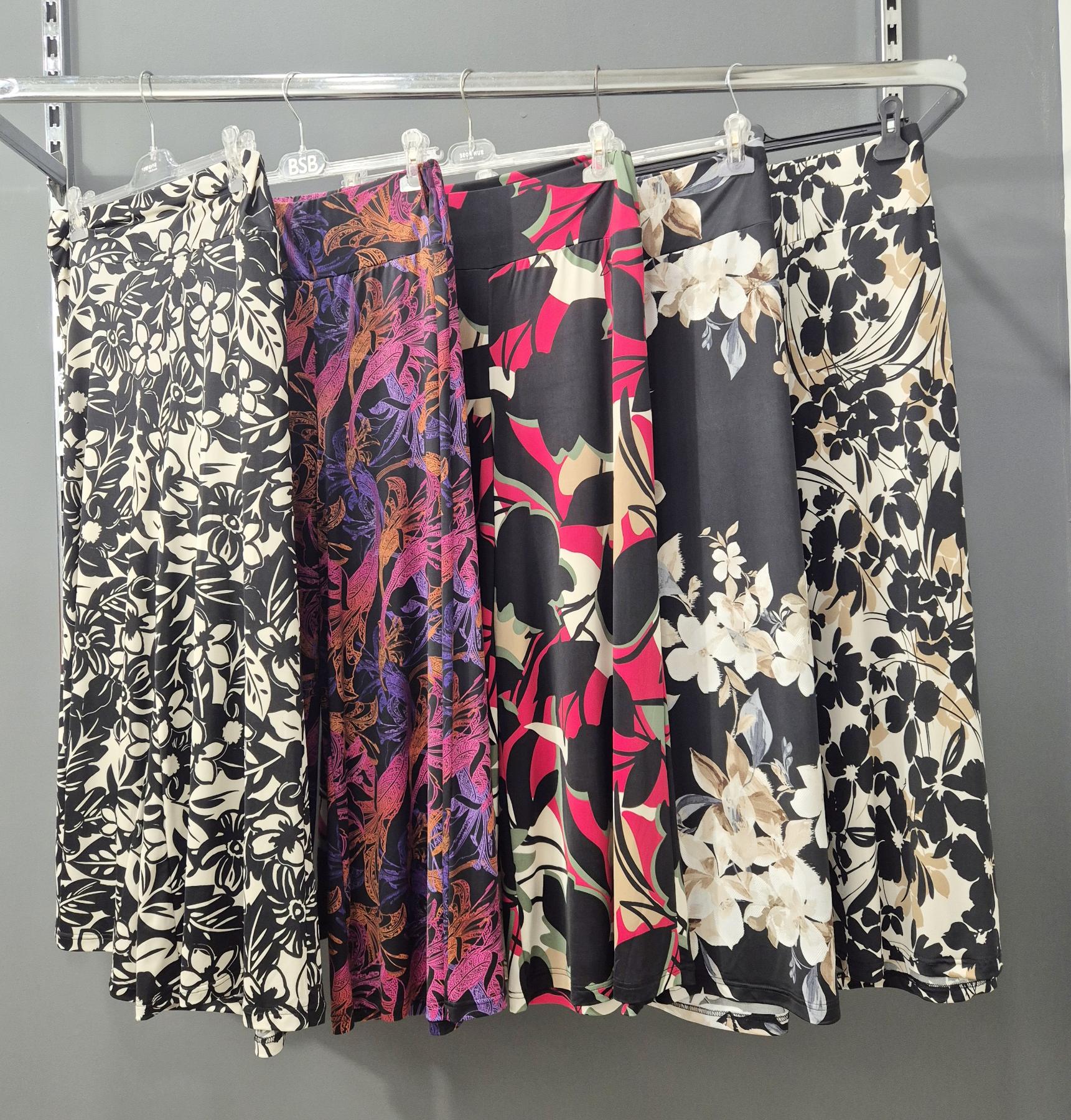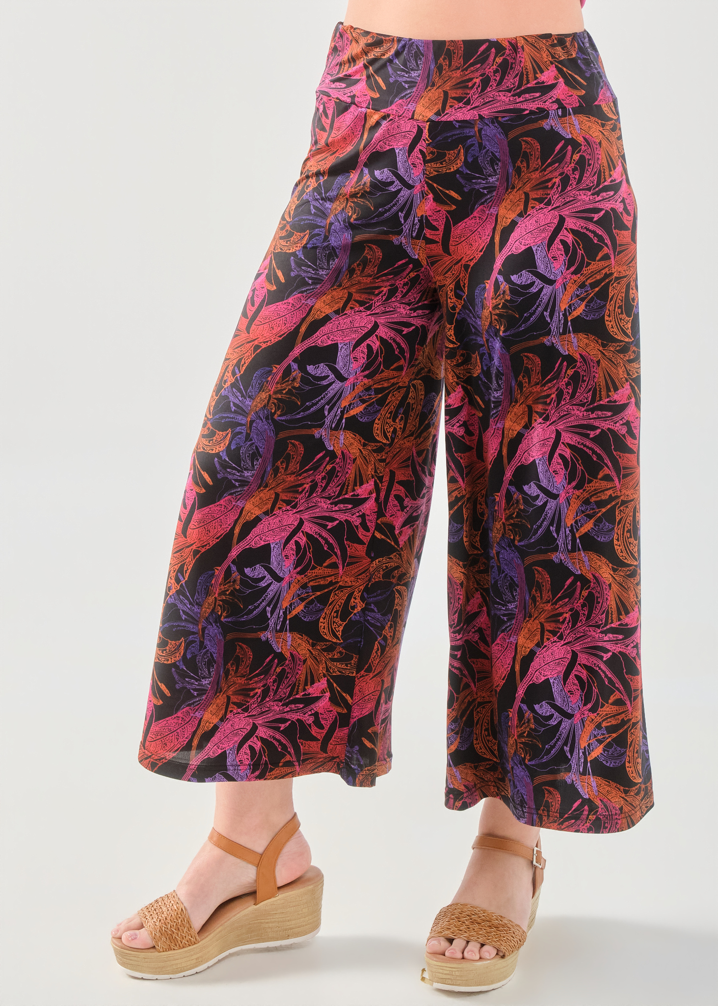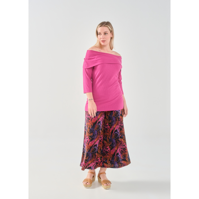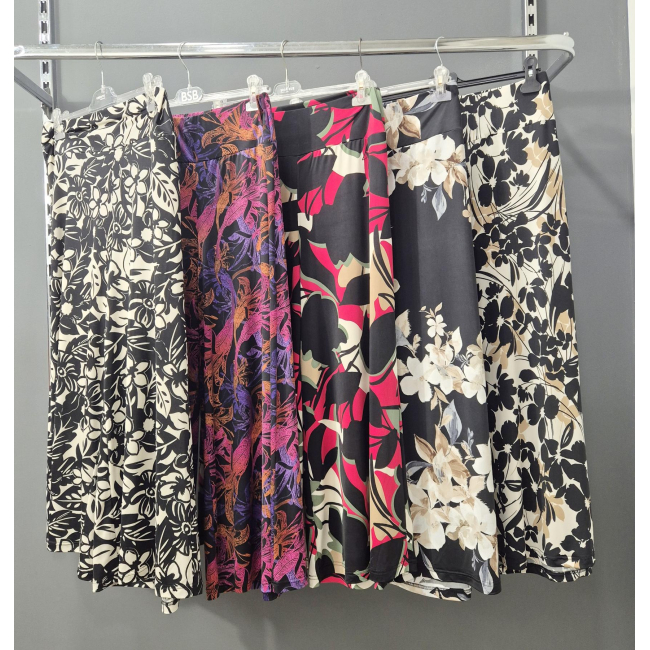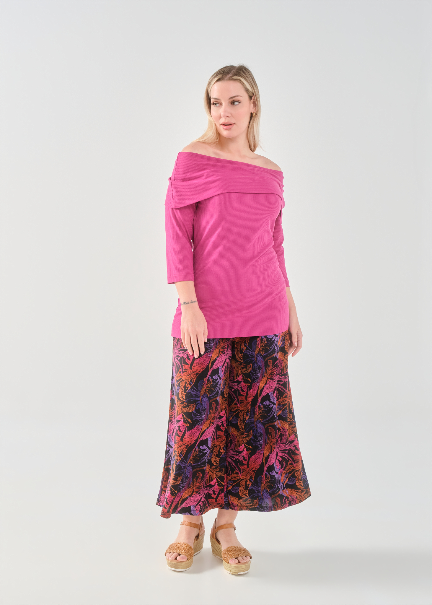 Ζιπ - Κιλότ σε Jersey εμπριμέ ύφασμα, μπάσκα στη μέση, σε Α άνετη γραμμή.
