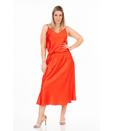 Φούστα μίντι με ασύμμετρο υπέροχο βολάν σε Artificial Leather (ελαστική δερματίνη), ζωνάκι με λάστιχο στα πλαΪνά και φερμουάρ πίσω. Πολύ άνετη ελαστική γραμμή