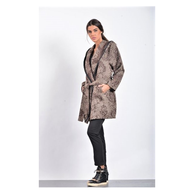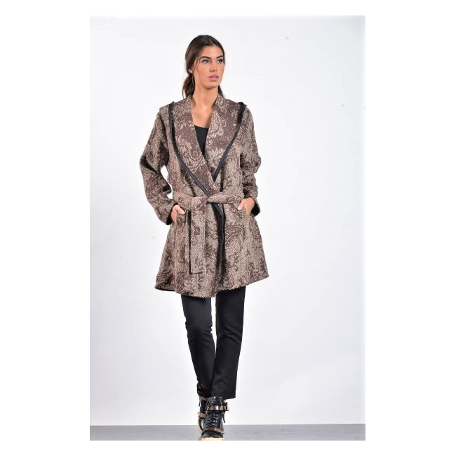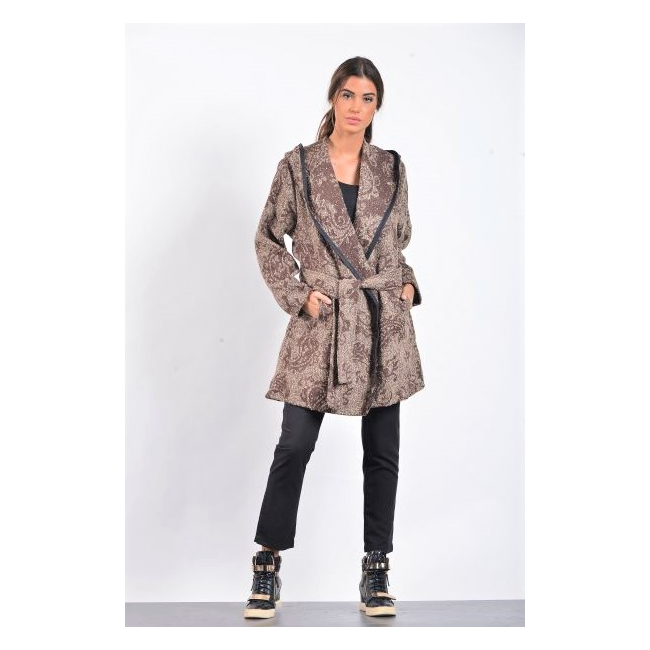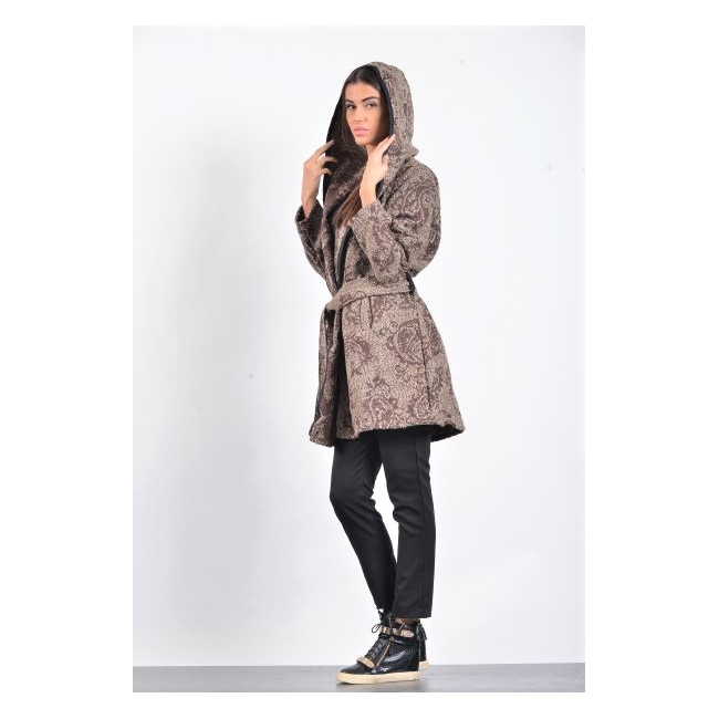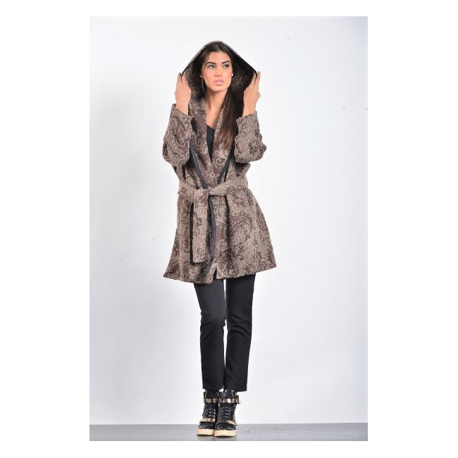 Ζακέτα μακριά μπουκλέ, 33% Wool, εμπριμέ, κουκούλα, "χούφτα" τσέπες σε Α πολύ άνετη γραμμή