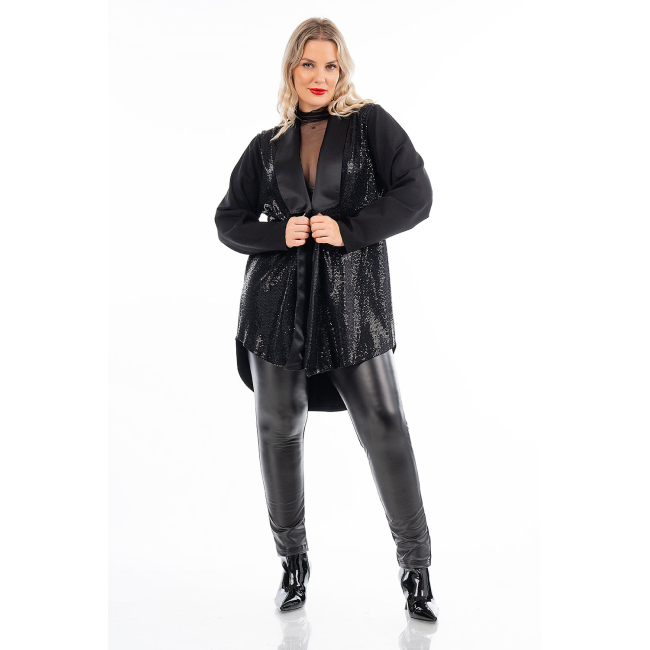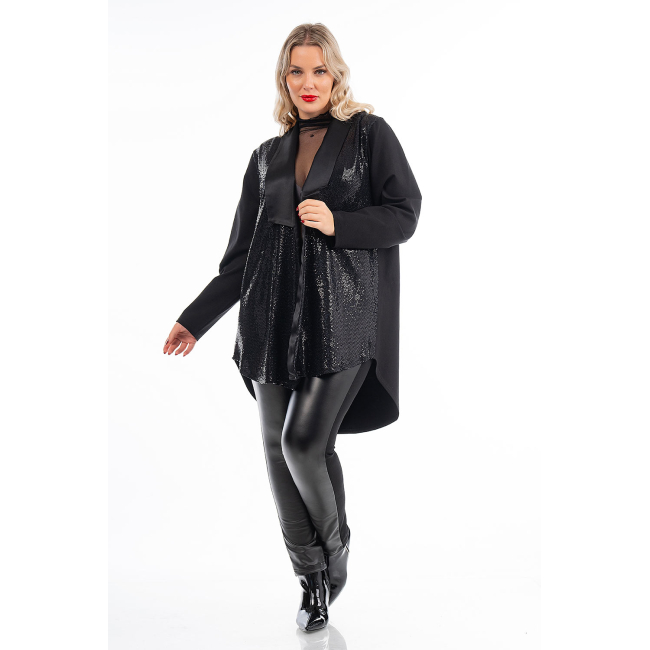 Σακκάκι oversize άνισο, Sequins ύφασμα μπροστά και two way ύφασμα σε πλάτη και μανίκια