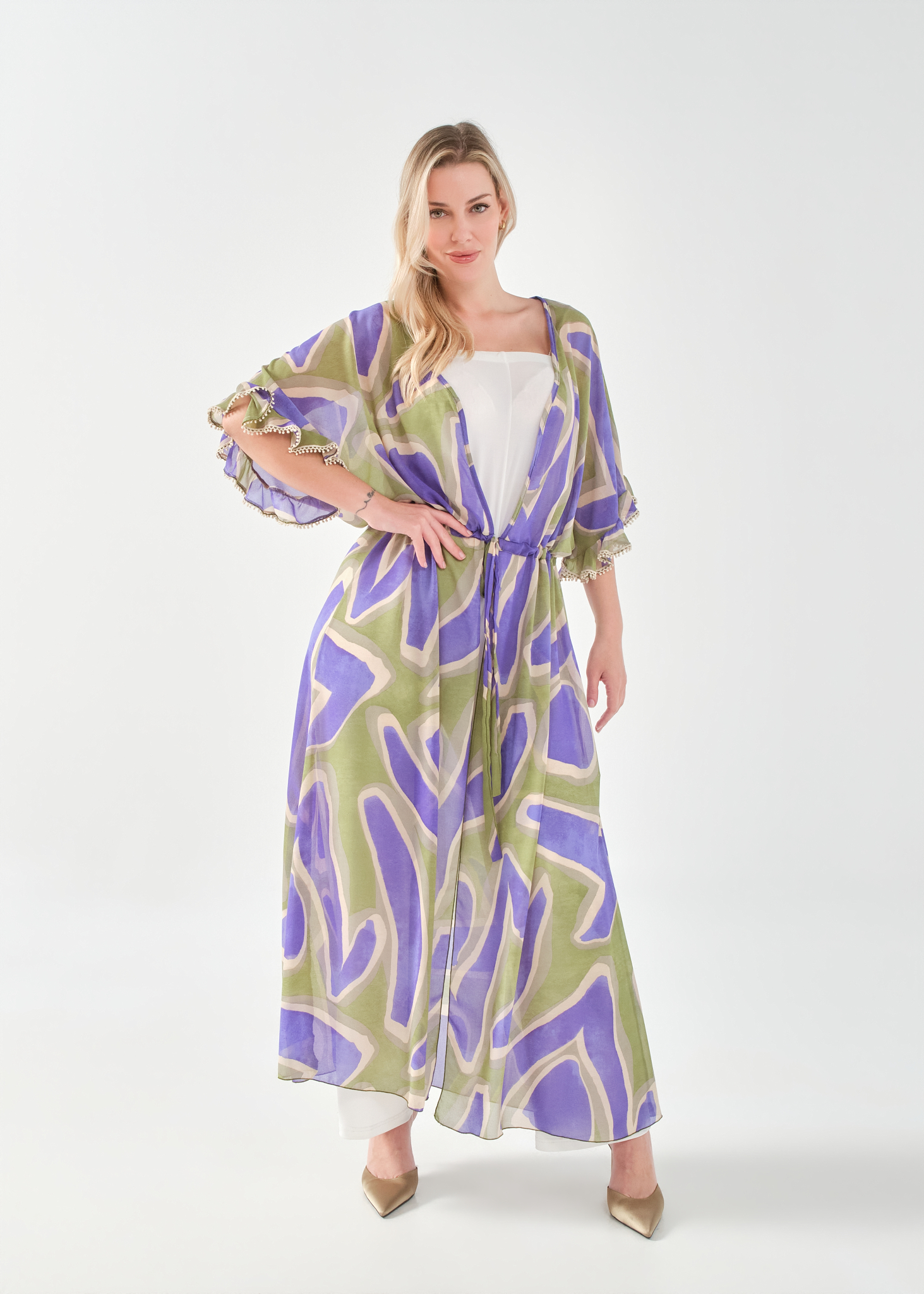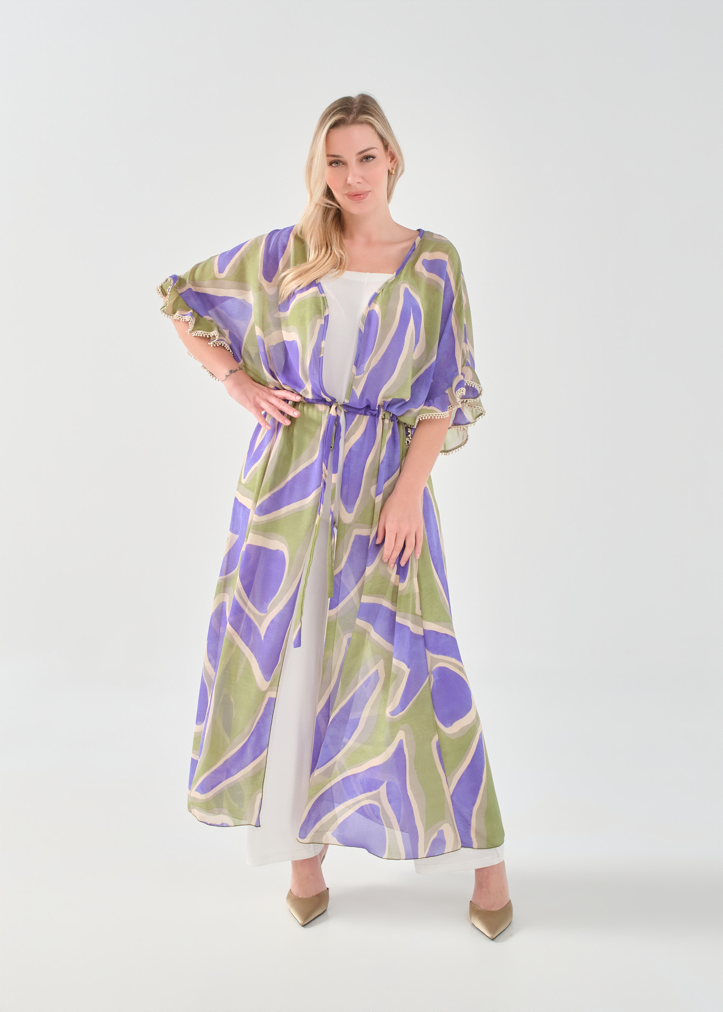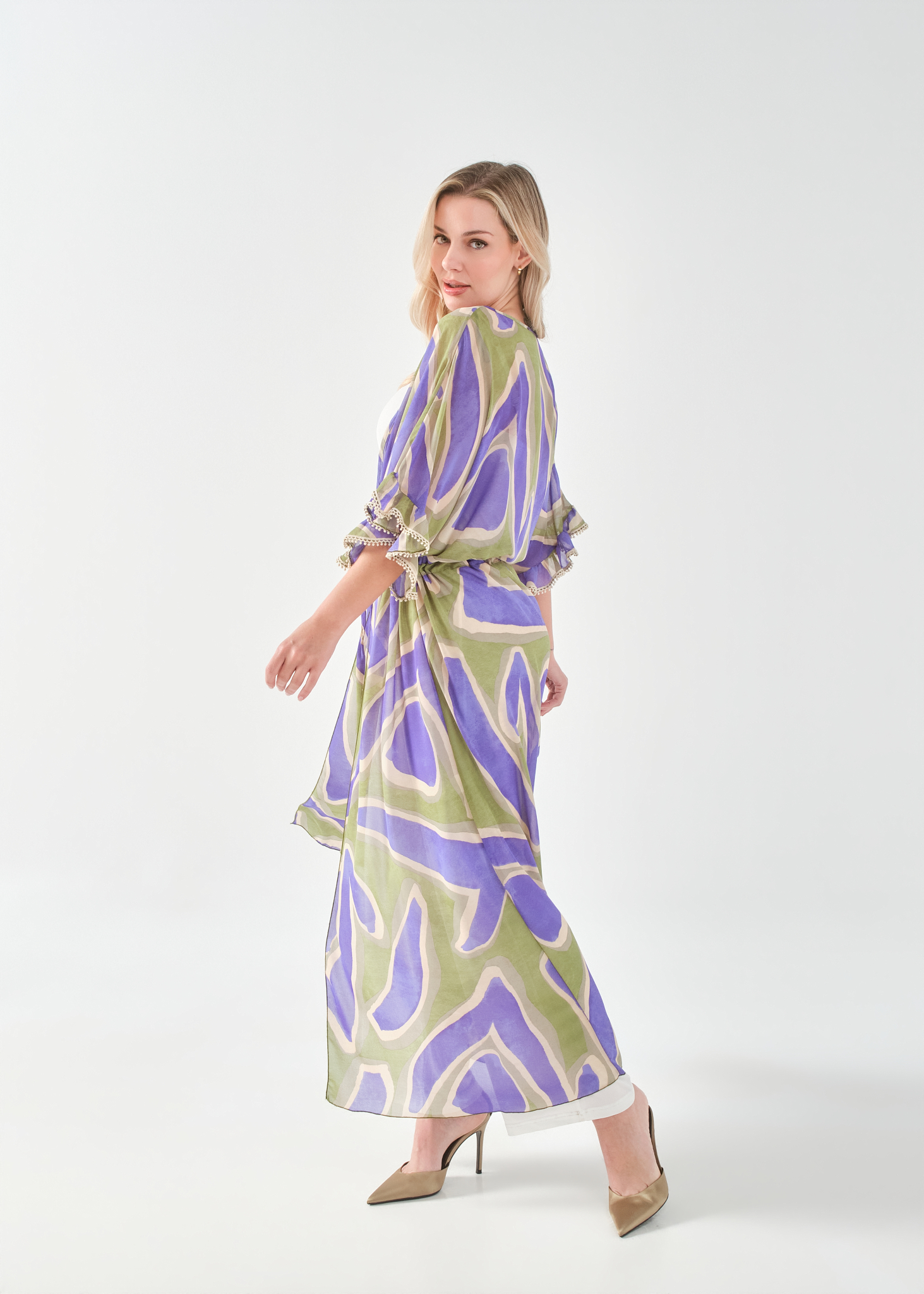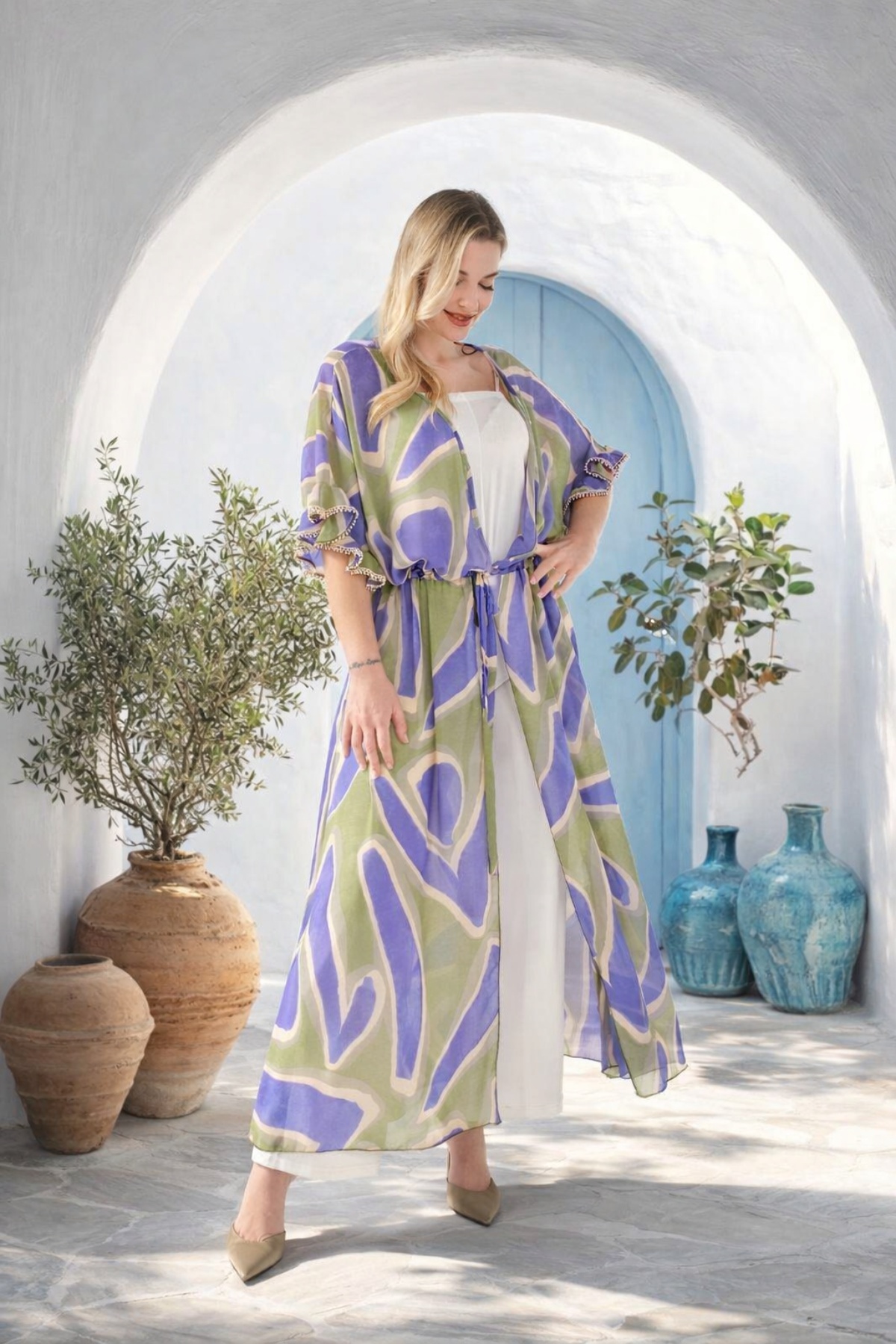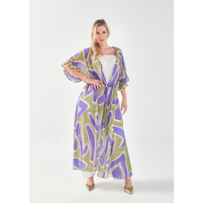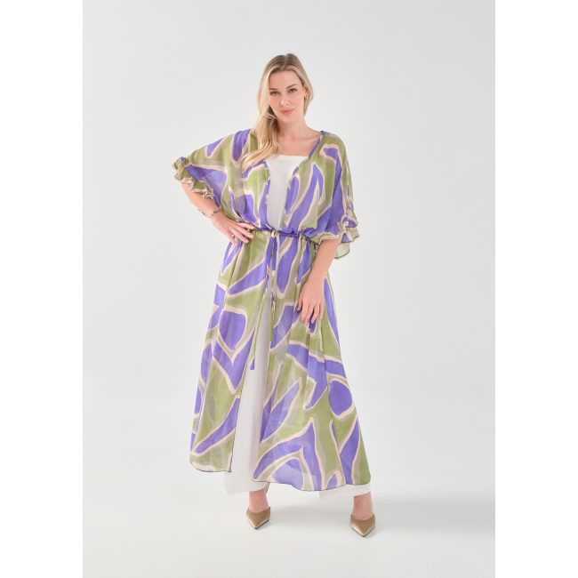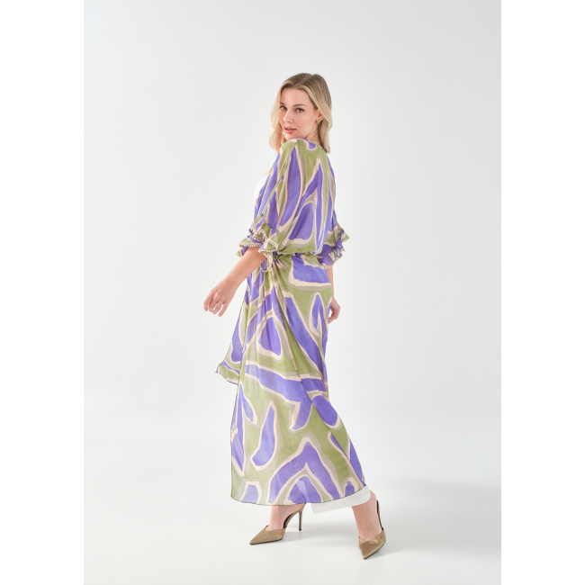 Τουνίκ/Κιμονό σε Μουσελίνα εμπριμέ ύφασμα, ζαπονέ μανίκια, σε Α πολύ άνετη γραμμή