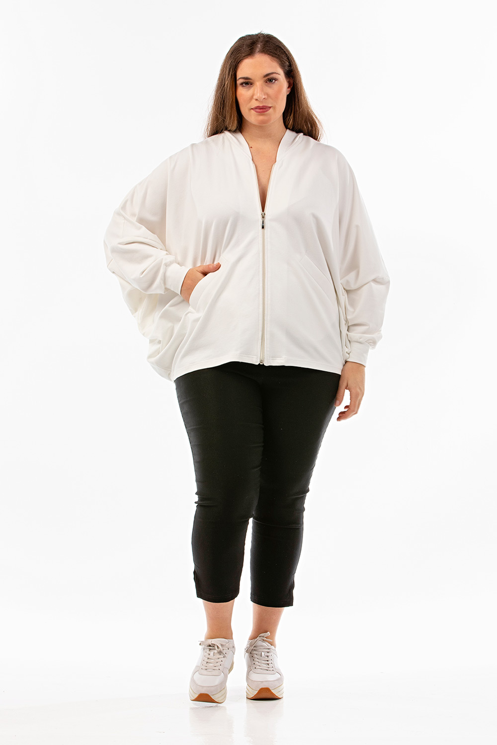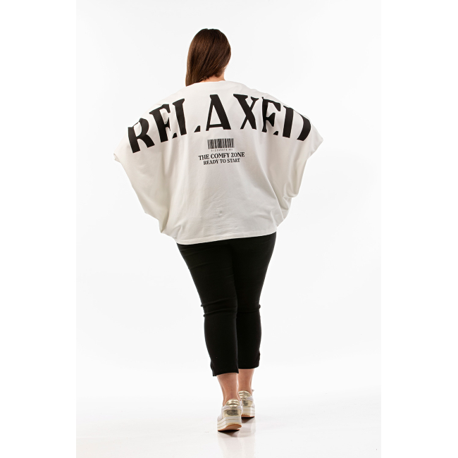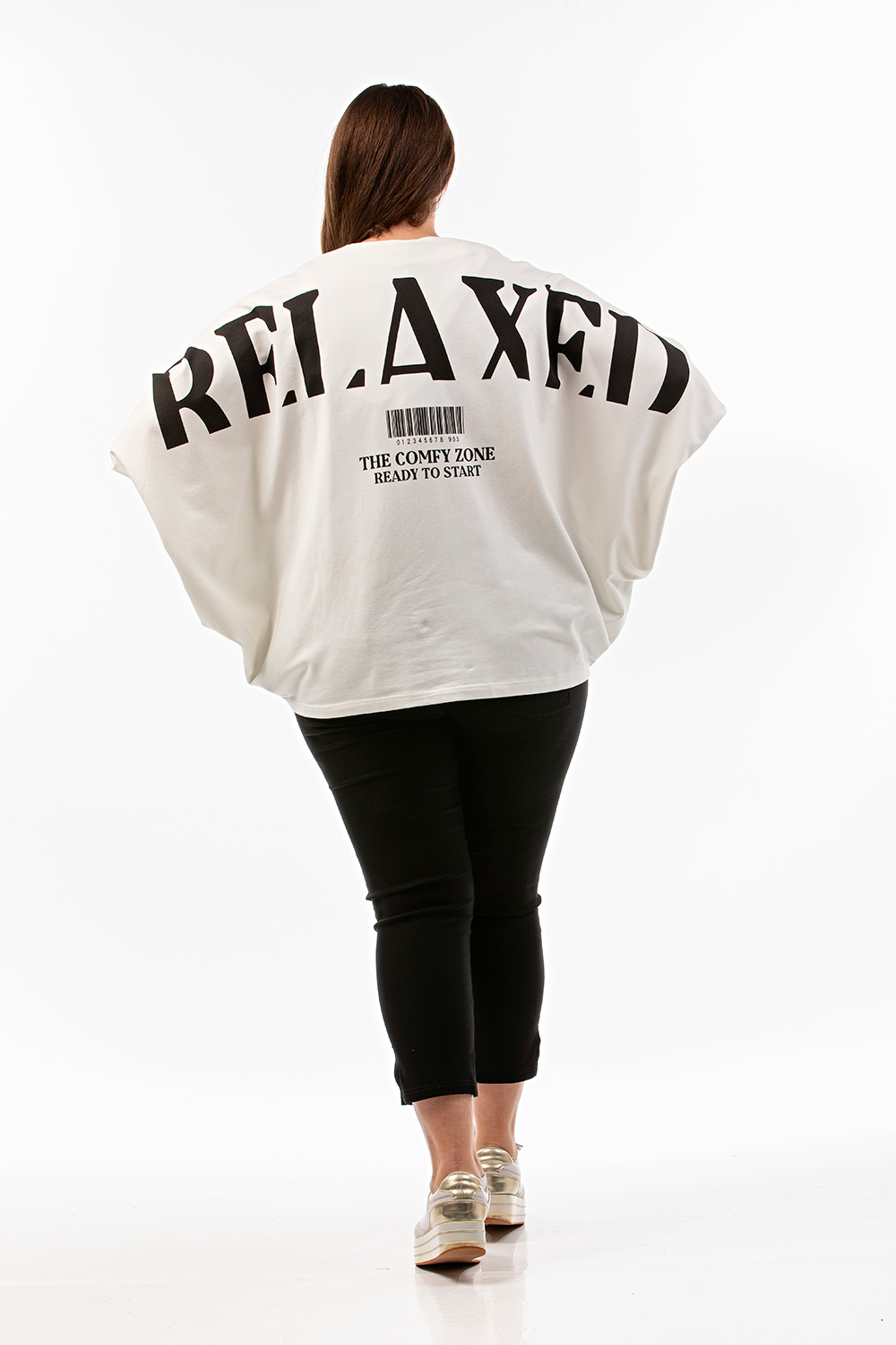 Zακέτα Baby Φούτερ, overize & one size, ζαπονέ μανίκια, φιλέτο τσέπες, τύπωμα στο πίσω μέρος "RELAXED", σε πολύ άνετη γραμμή