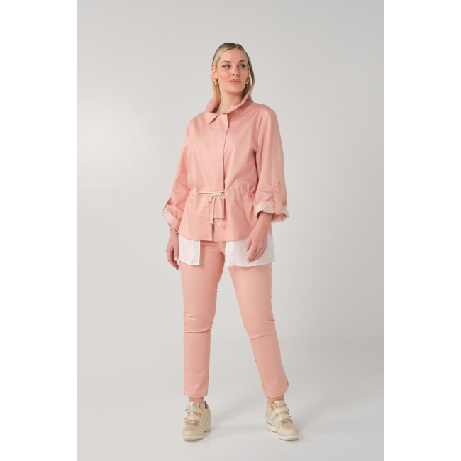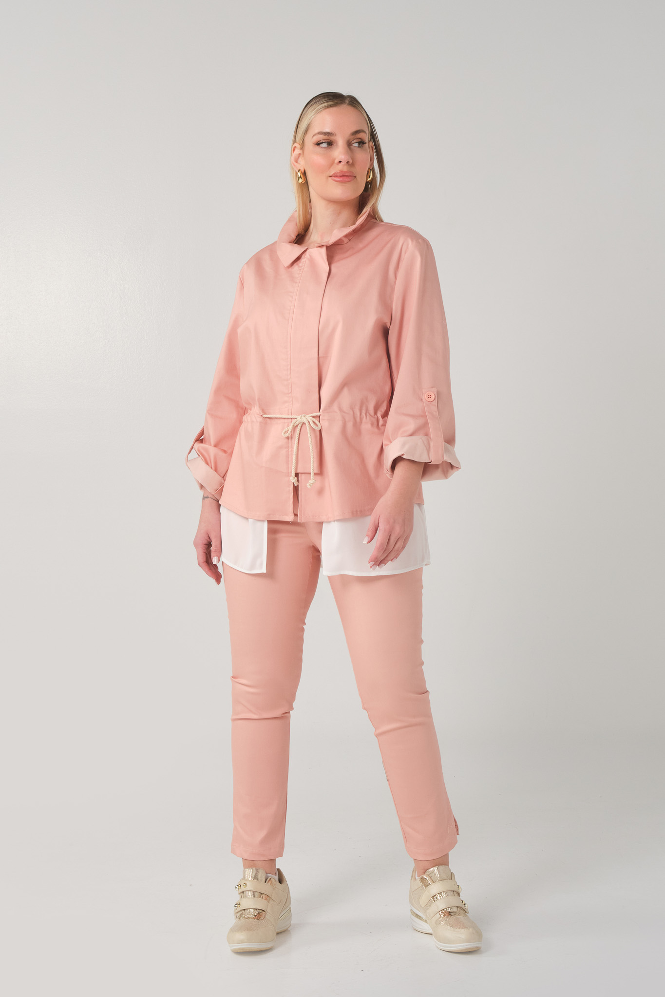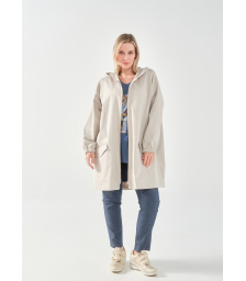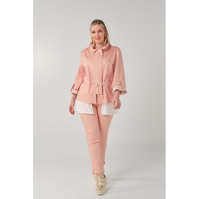 Πέτο γιακά, φερμουάρ, αναδιπλώμενα μανίκια, εσωτερικό κορδόνι για δημιουργία μεσάτου (προαιρετικά), σε ίσια πολύ άνετη γραμμή