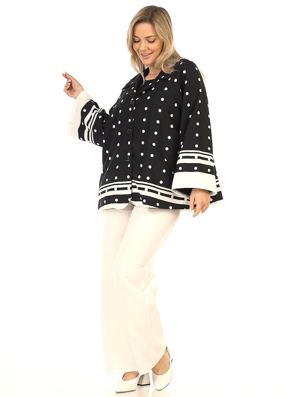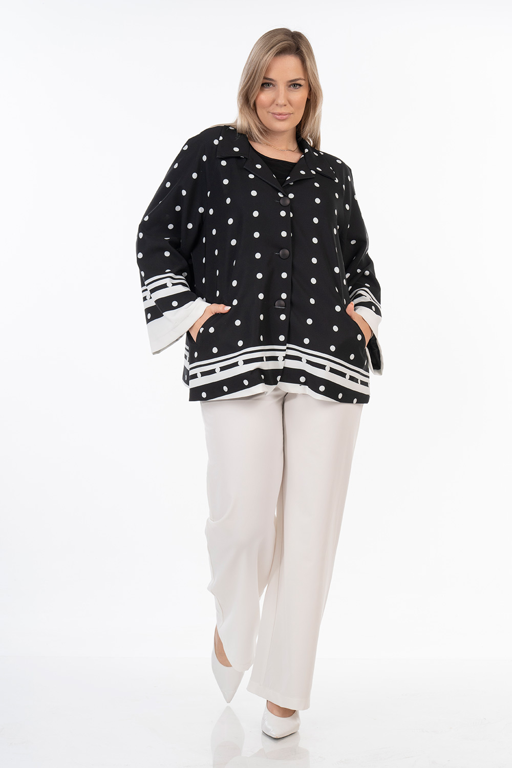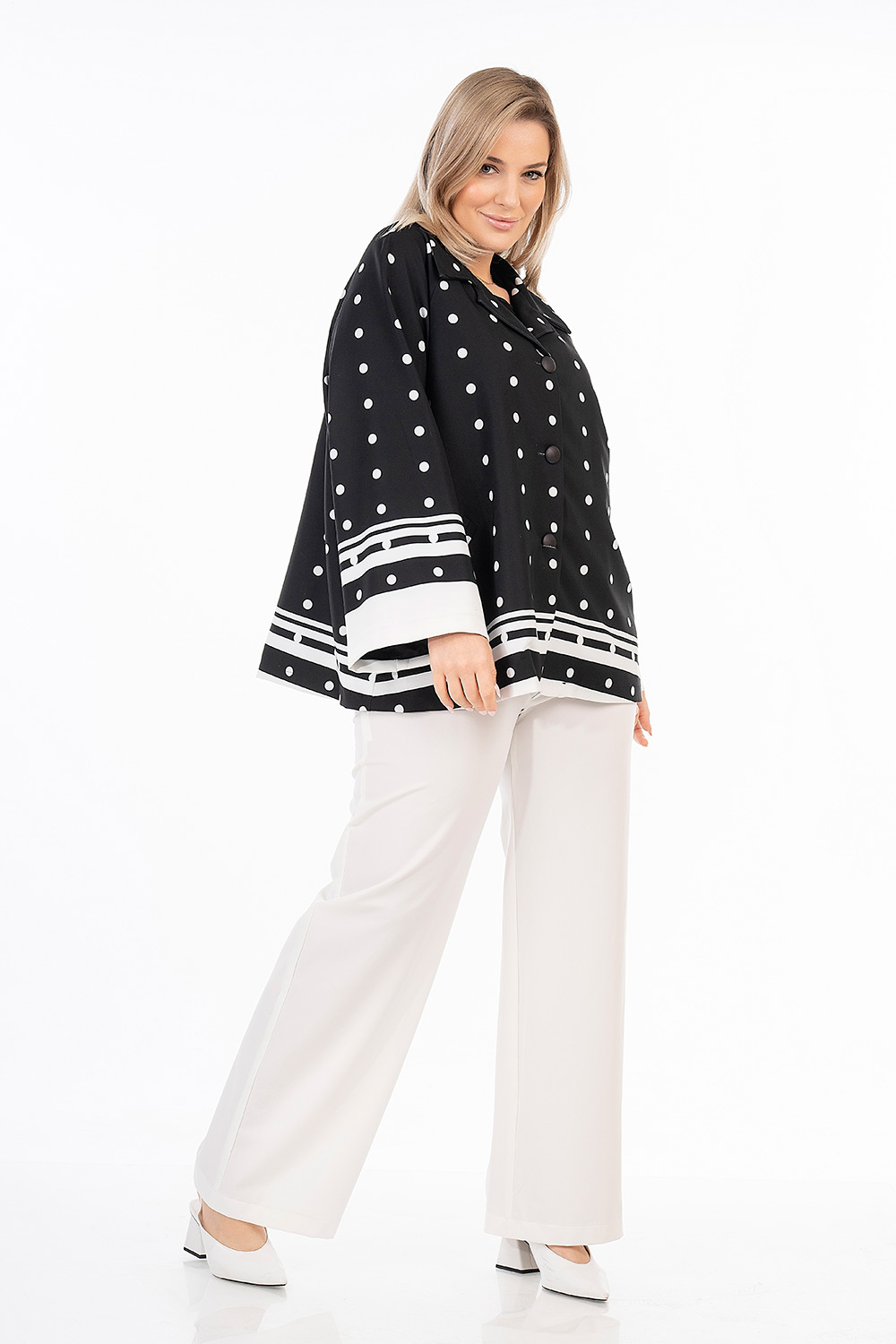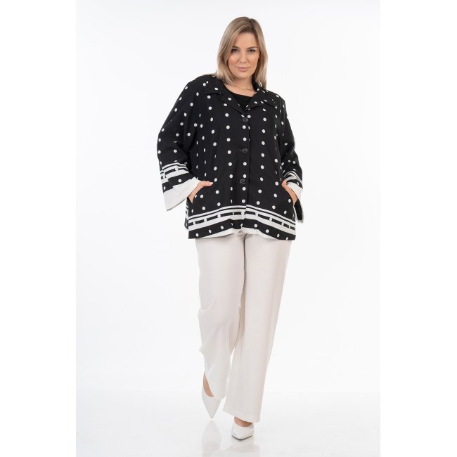Σακάκι σε ανορθωτικό ύφασμα, σκεπάζει την κοιλίτσα κολακεύοντας έτσι την σιλουέτα μας όποιο και αν είναι το size και ο σωματότυπός μας. Πέτο γιακά, κουμπιά, φιλέτο εσωτερικές τσέπες, στρογγυλό τελείωμα, μανίκια και σώμα σε Α πολύ άνετη γραμμή.