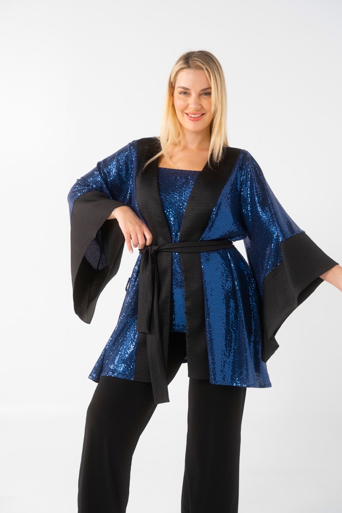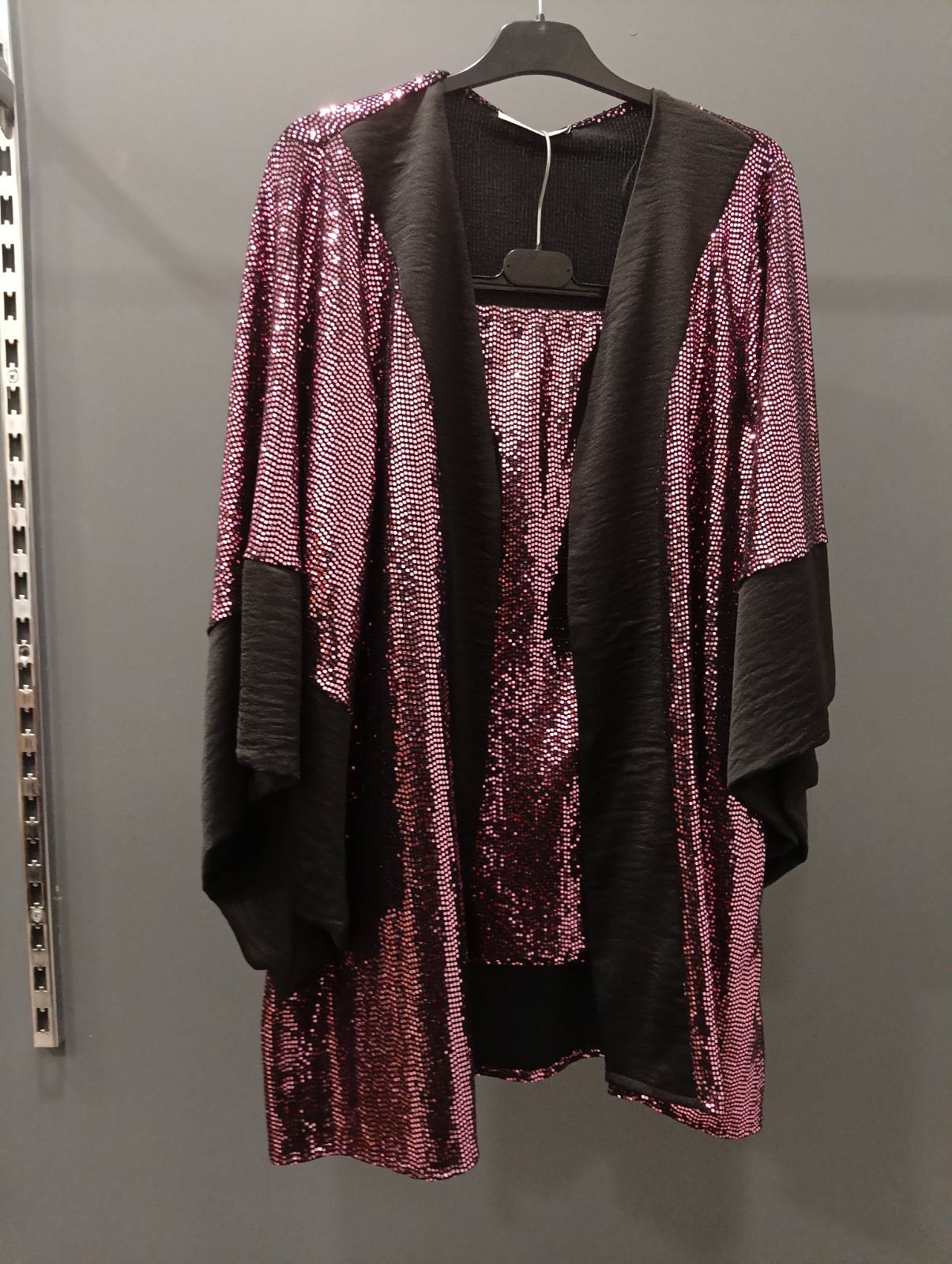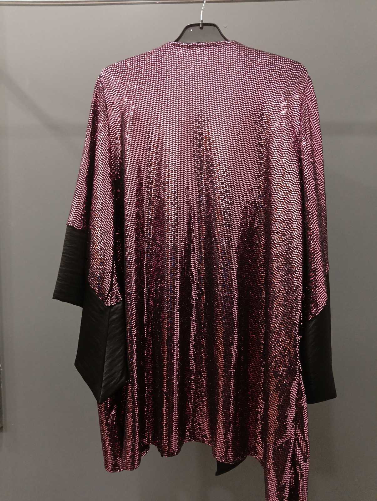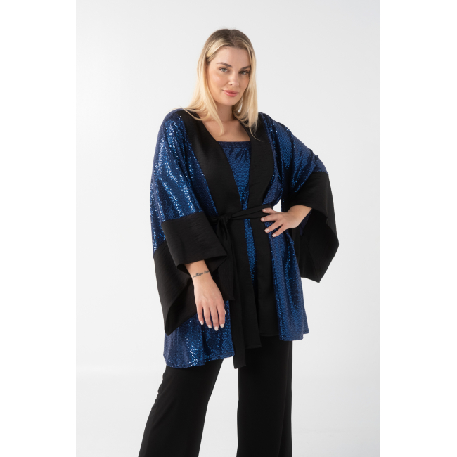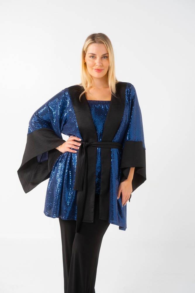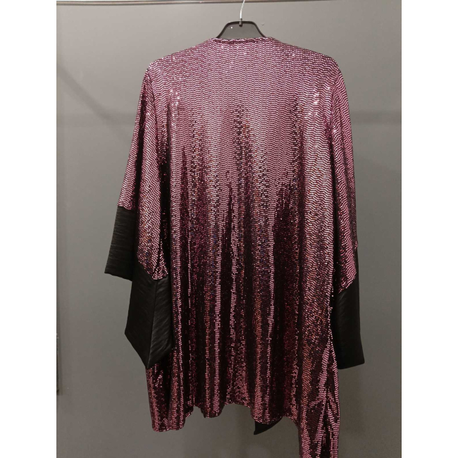 Τουνίκ/Ζακέτα σε Sequins Disco ύφασμα, Κομψή Ζακέτα σε ίσια πολύ άνετη γραμμή, με φάσα μαύρη ζορζέτα σε γιακά και μανίκια, άνισα μανίκια και ζώνη για προαιρετικό δέσιμό είτε ως κρουαζέ ή ως ίσιο.