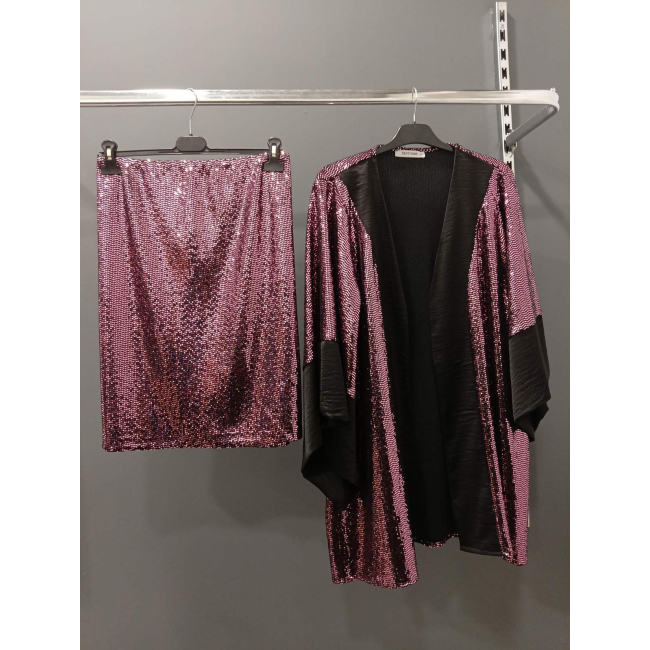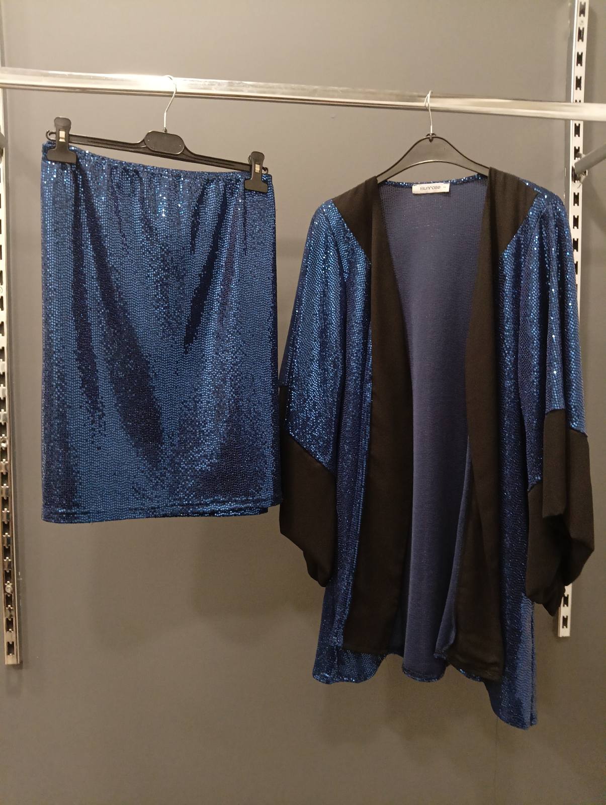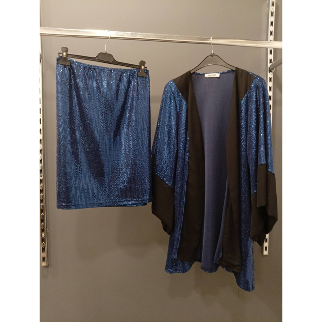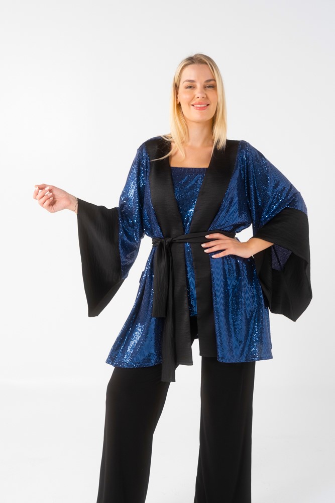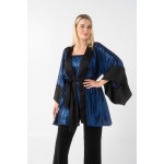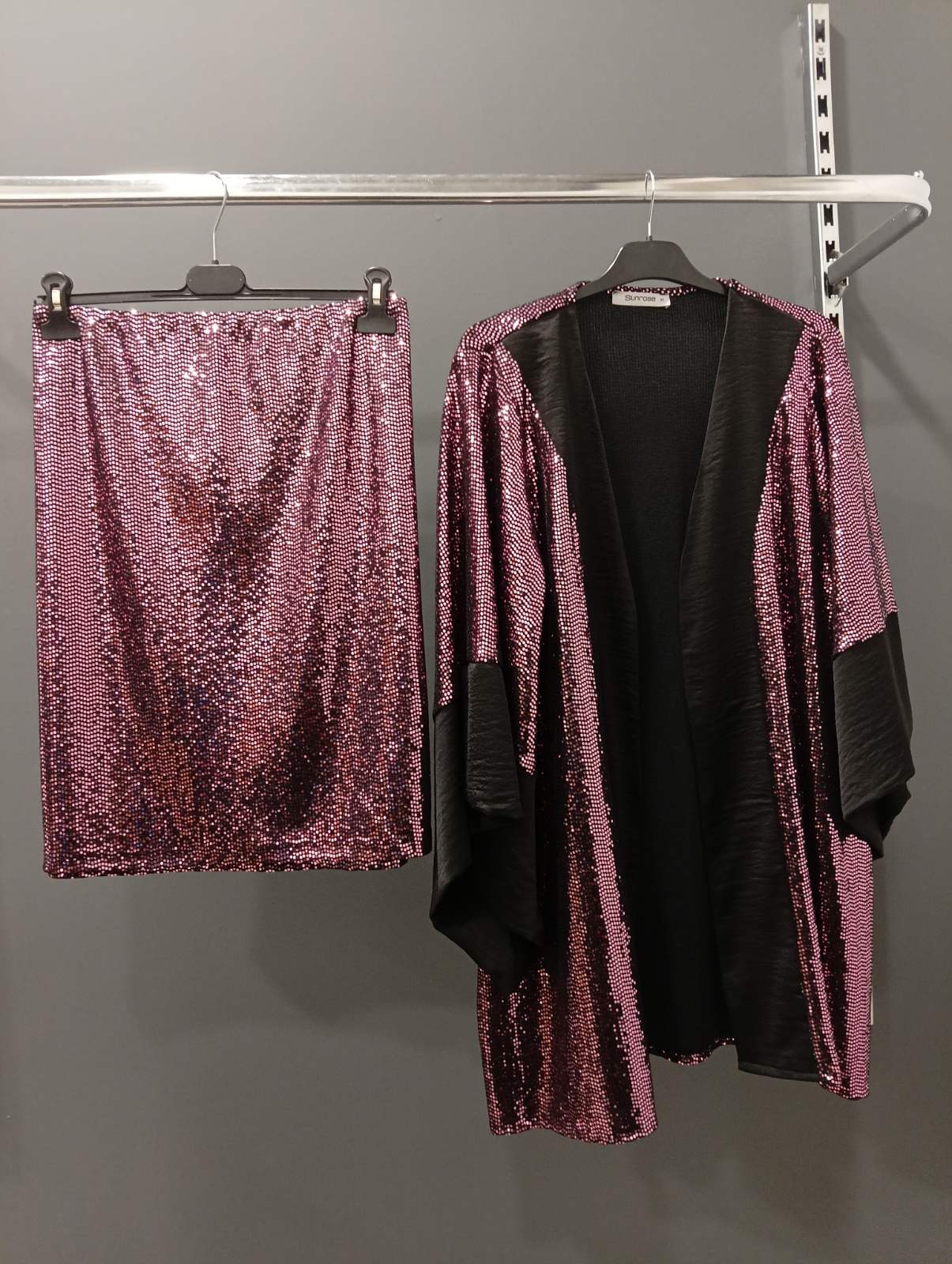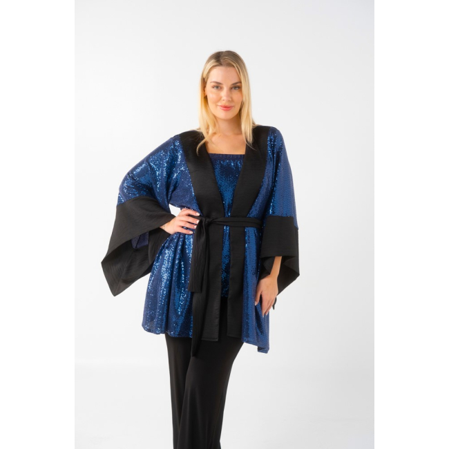 Τουνίκ/Ζακέτα σε Sequins Disco ύφασμα, Κομψή Ζακέτα σε ίσια πολύ άνετη γραμμή, με φάσα μαύρη ζορζέτα σε γιακά και μανίκια, άνισα μανίκια και ζώνη για προαιρετικό δέσιμό είτε ως κρουαζέ ή ως ίσιο.