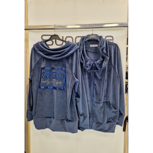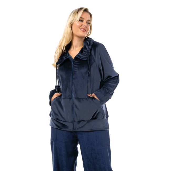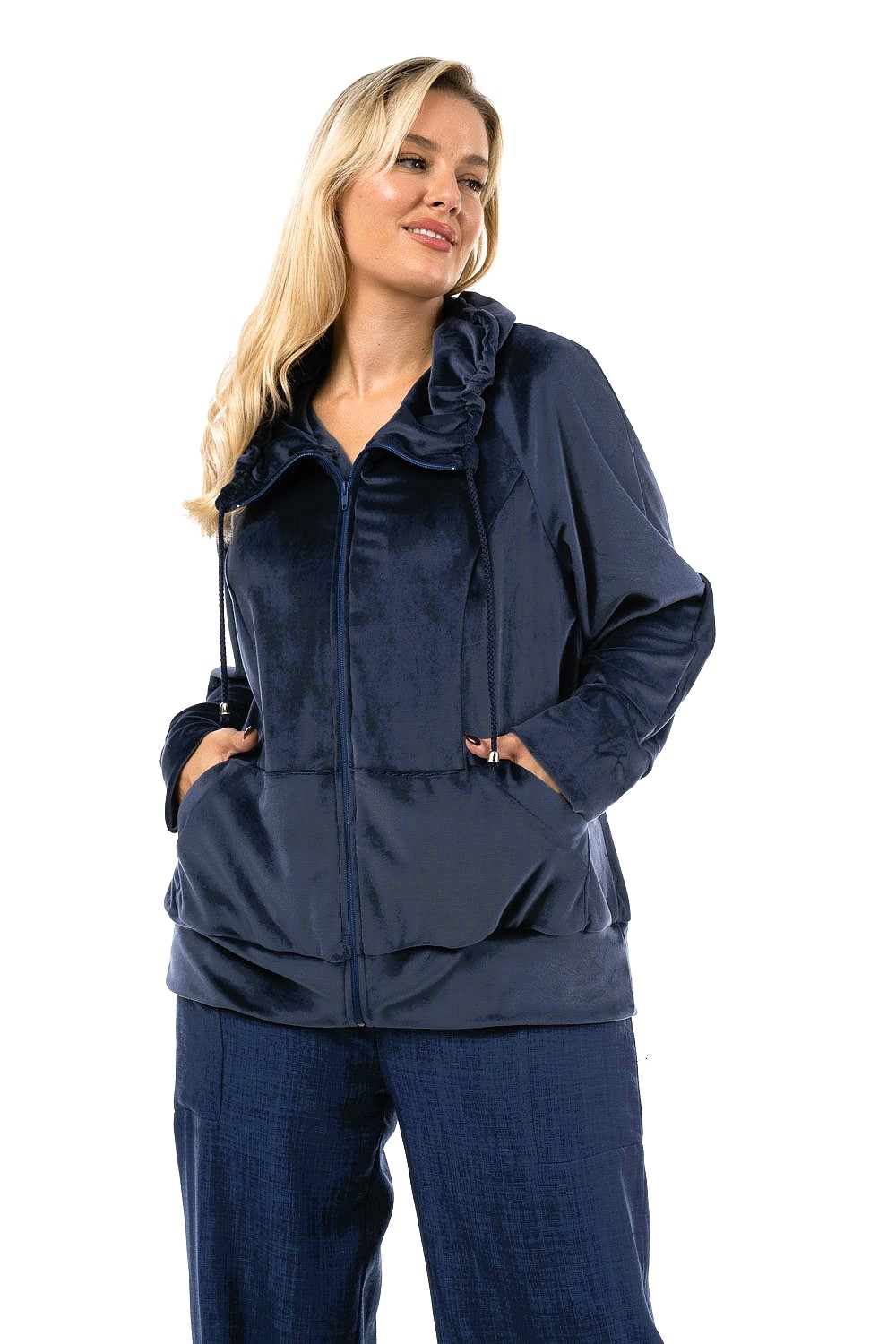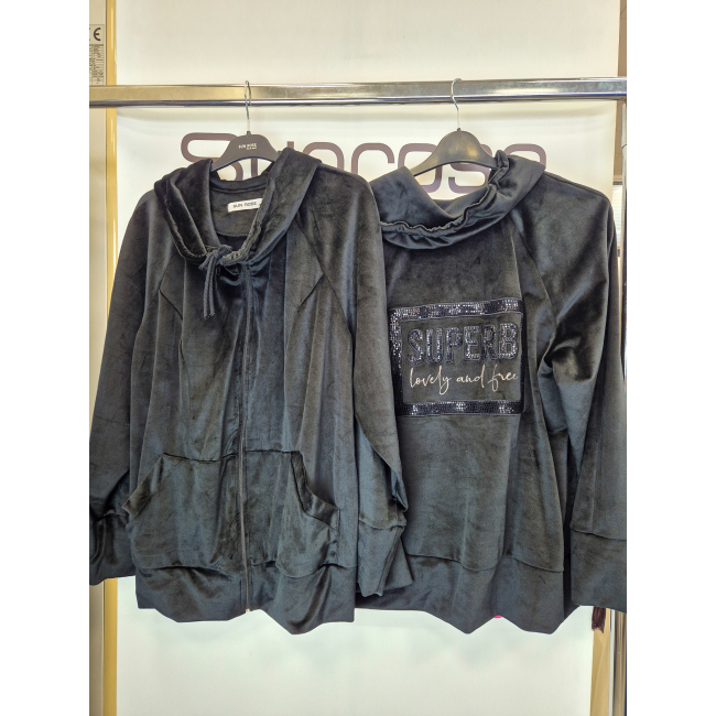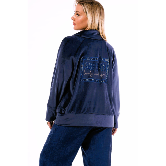 Ζακέτα με διαχωριζόμενο φερμουάρ, Μάο γιακά με εσωτερικό τούνελ για δημιουργία ζιβάγκο, ρεγκλάν μανίκια, εξωτερικές τσέπες τύπου "καγκουρό", Sequins τύπωμα στην πλάτη του ίδιου χρώματος.