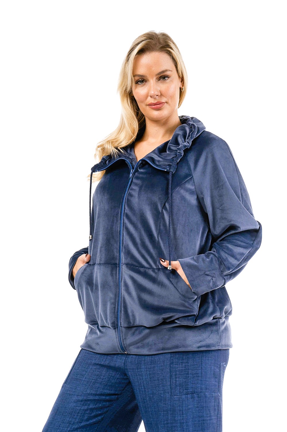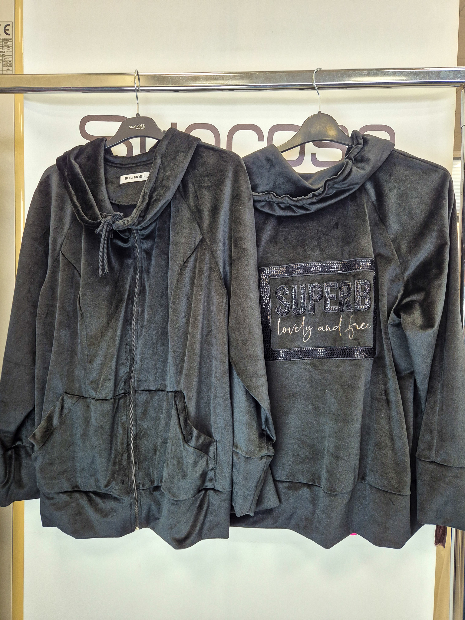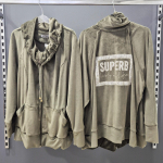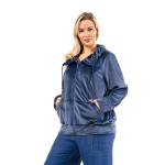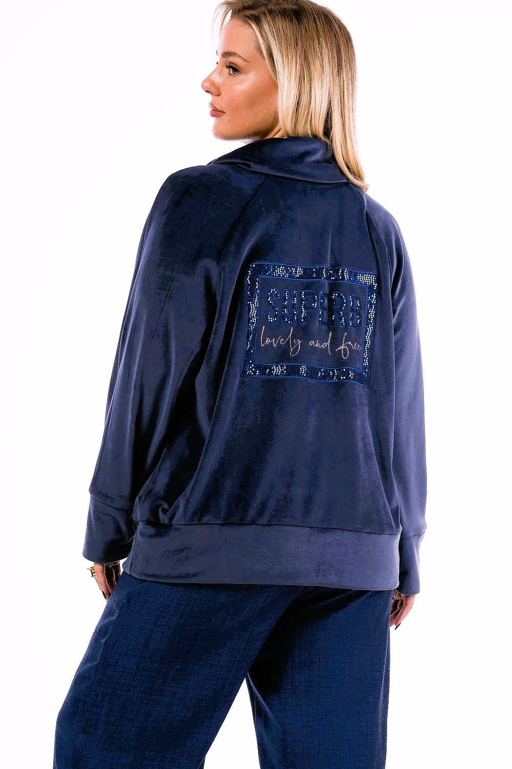 Ζακέτα με διαχωριζόμενο φερμουάρ, Μάο γιακά με εσωτερικό τούνελ για δημιουργία ζιβάγκο, ρεγκλάν μανίκια, εξωτερικές τσέπες τύπου "καγκουρό", Sequins τύπωμα στην πλάτη του ίδιου χρώματος.