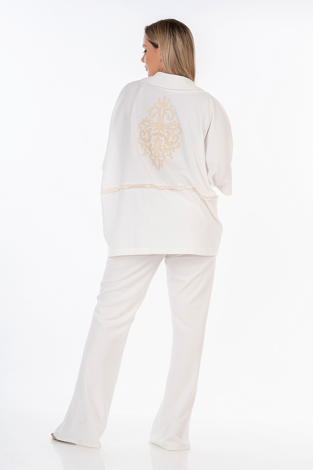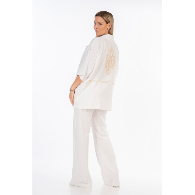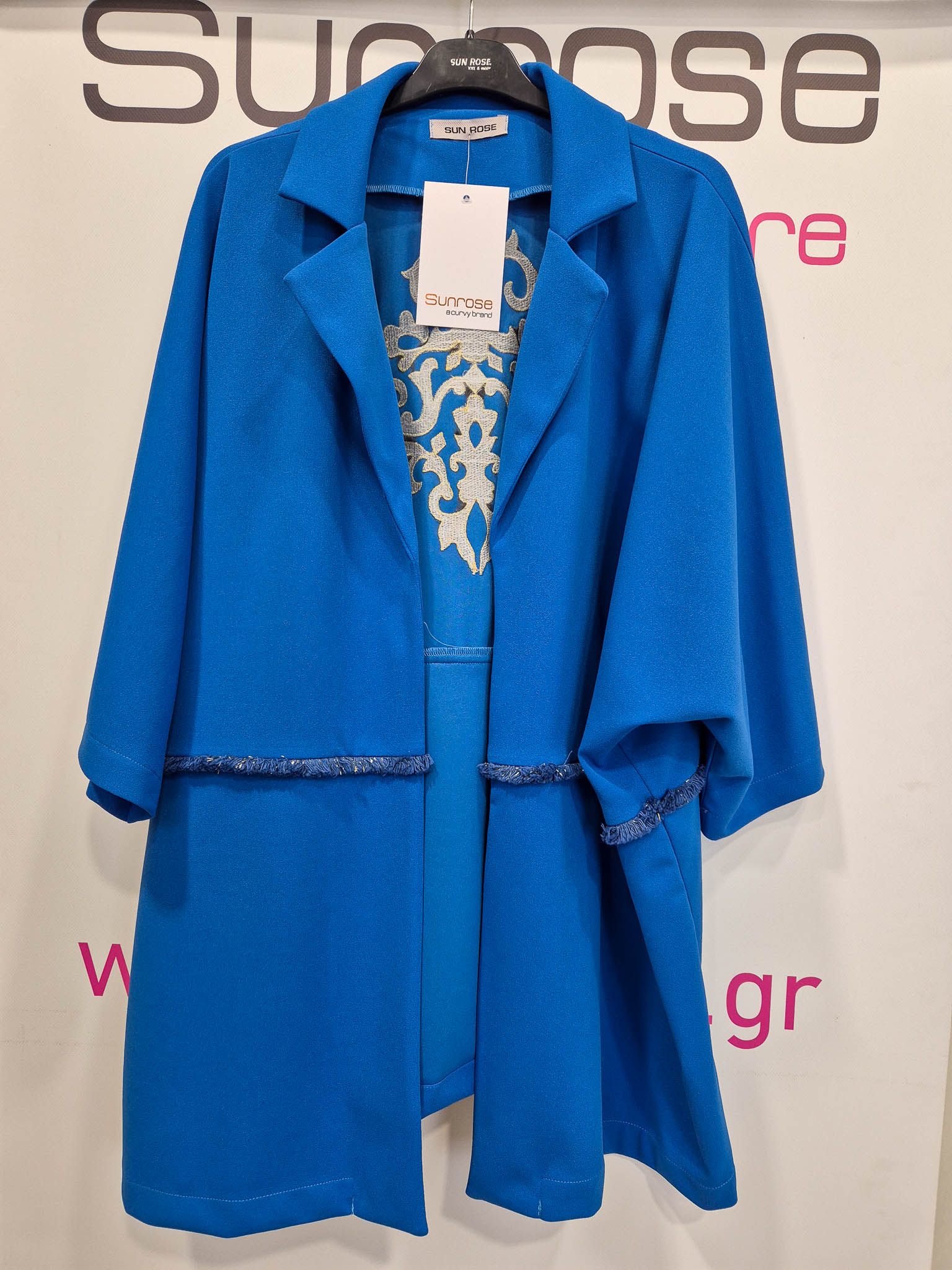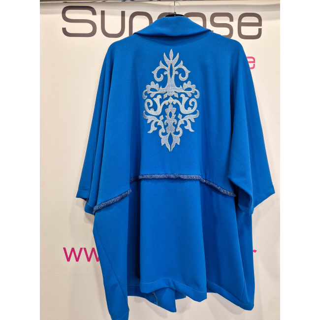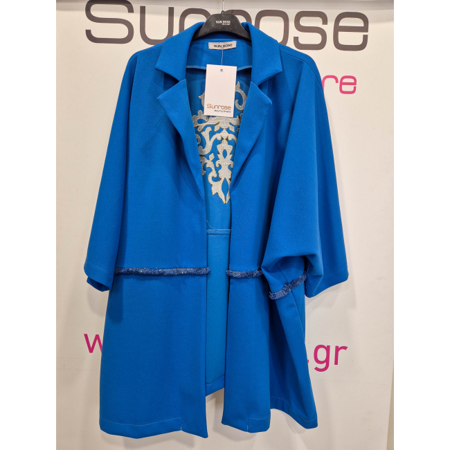 Ζακέτα σε υπέροχη loose γραμμή, λεπτό scuba crep ελαστικό ύφασμα, πέτο γιακά, ελεύθερα μανίκια και ιδιαίτερο εντυπωσιακό κέντημα στην πλάτη και τρέσσα στην μέση.