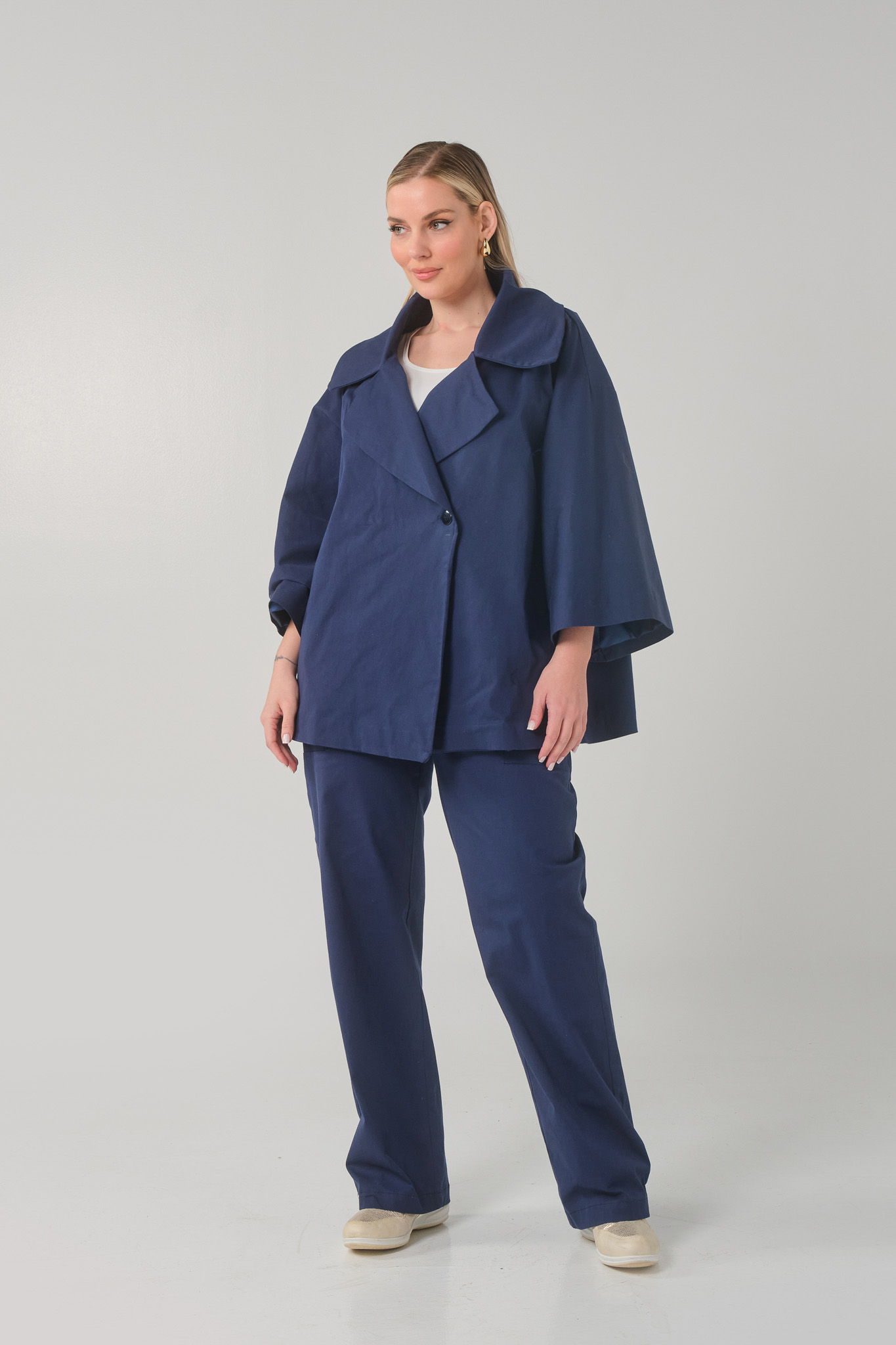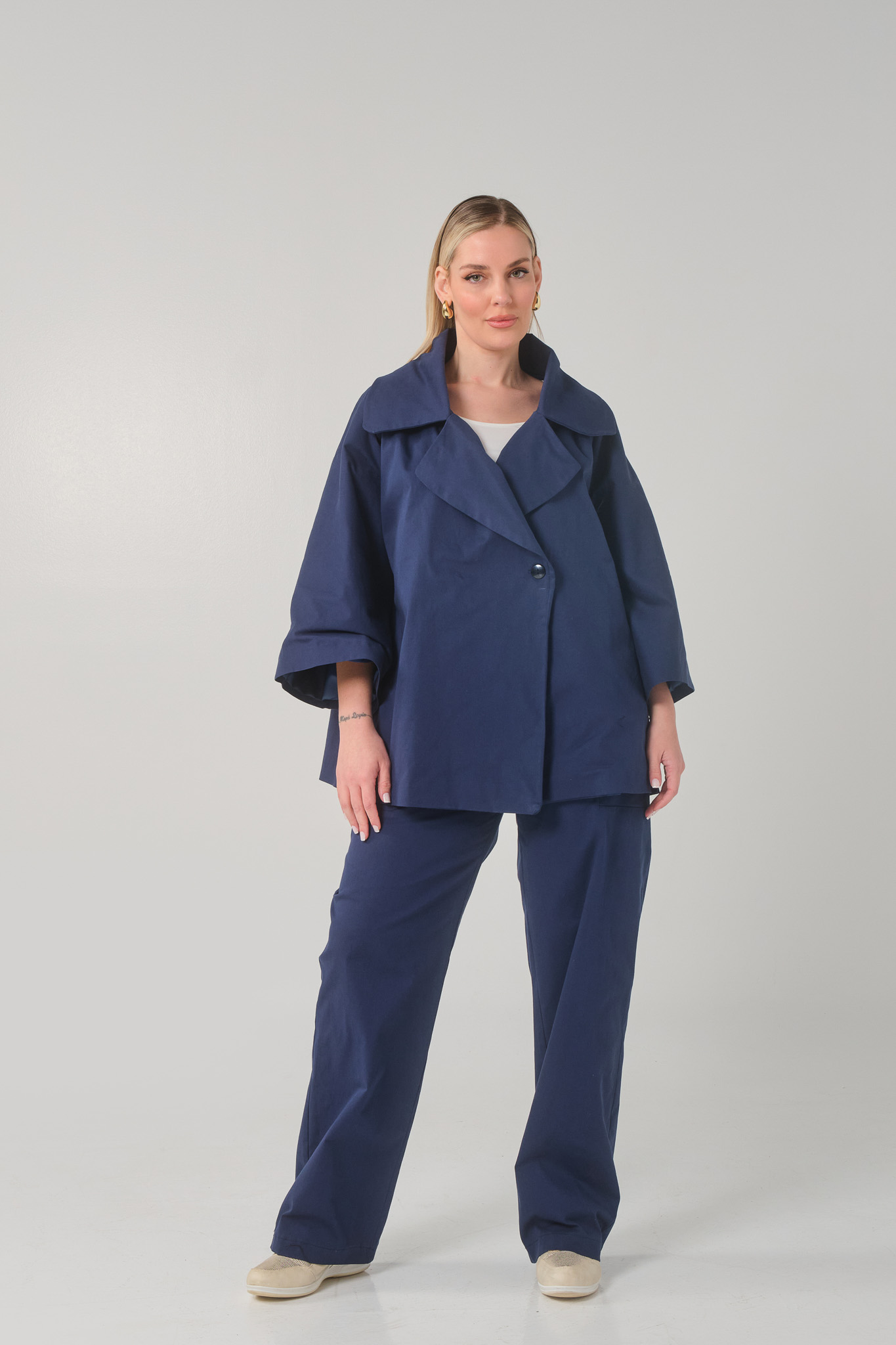 Σακάκι σε βαμβακερό ύφασμα, (ποπλίνα 100% cotton), σκεπάζει την κοιλίτσα κολακεύοντας έτσι την σιλουέτα μας όποιο και αν είναι το size και ο σωματότυπός μας.