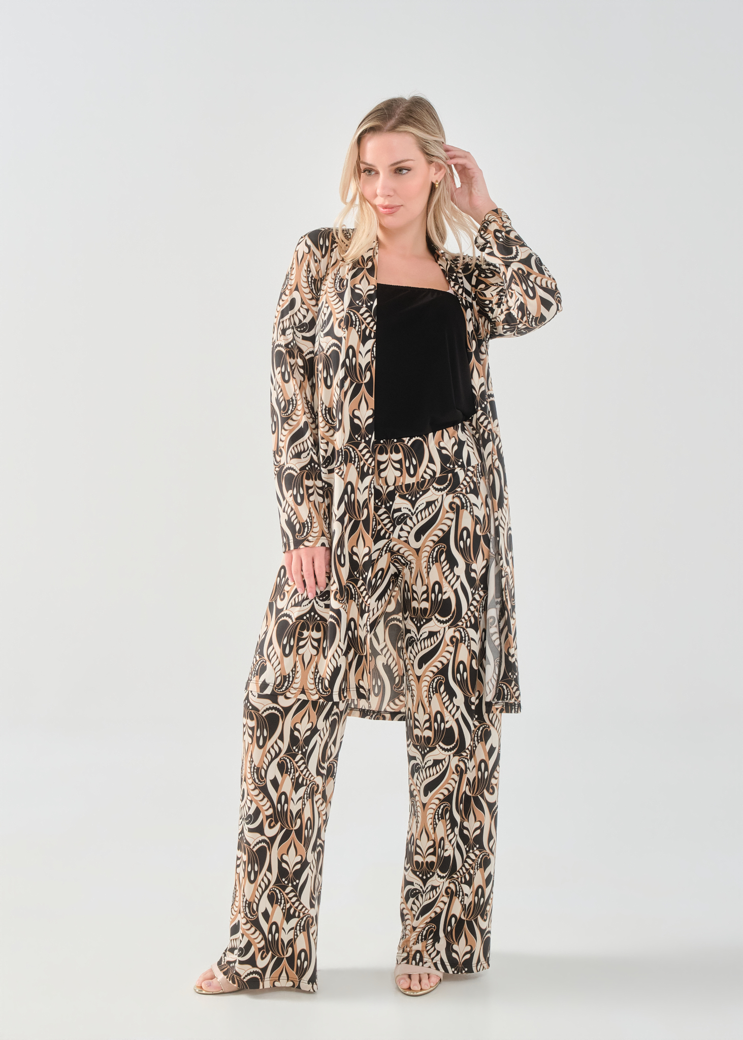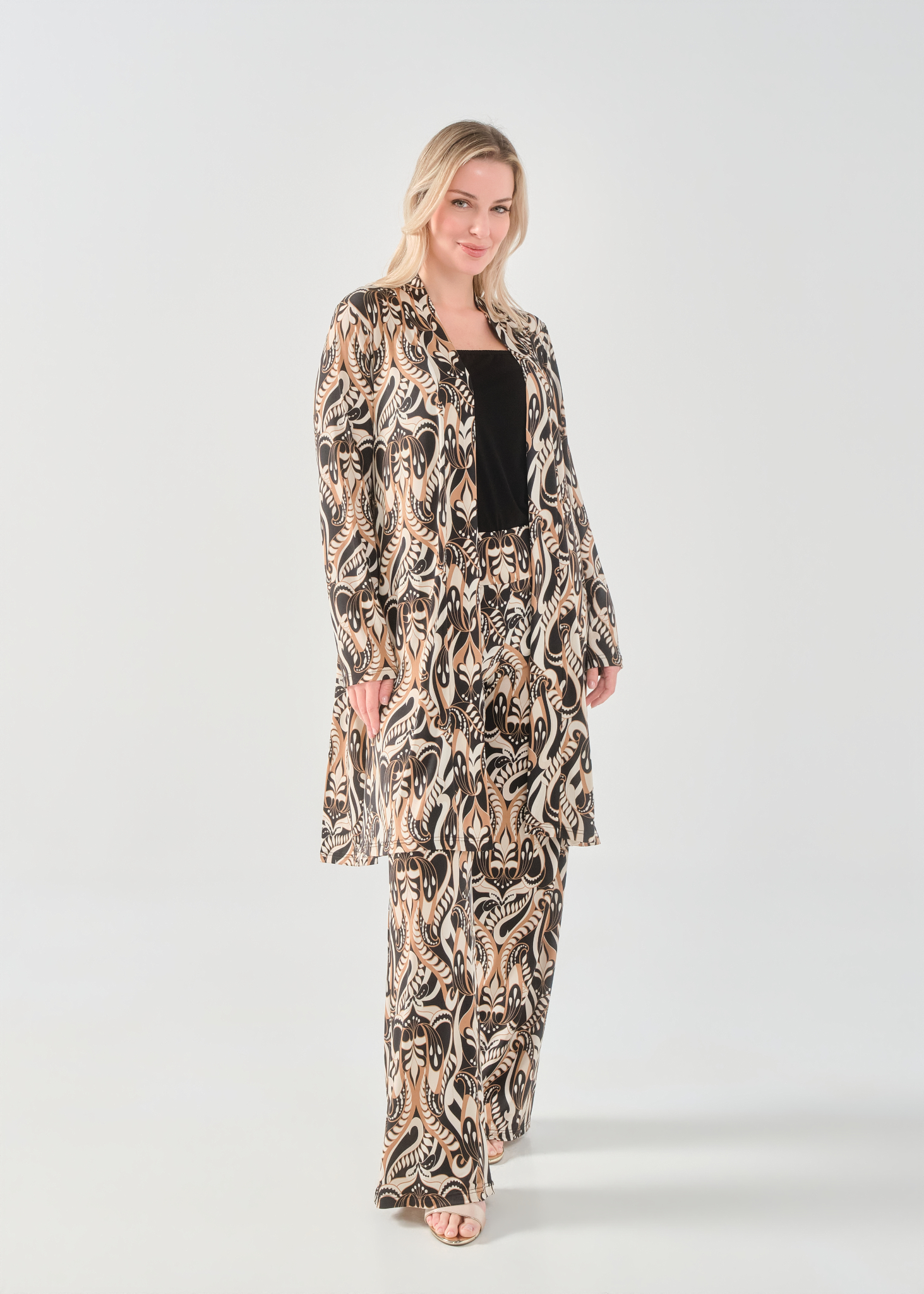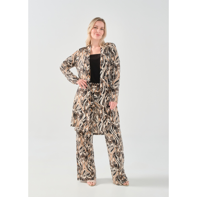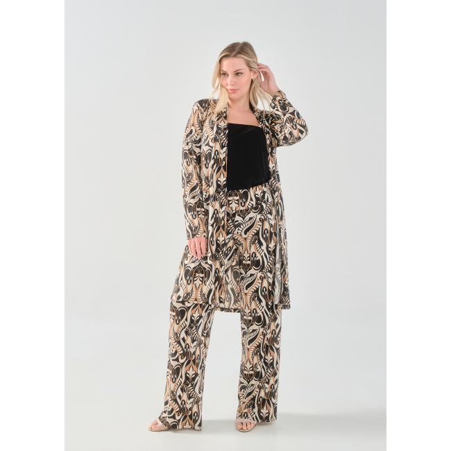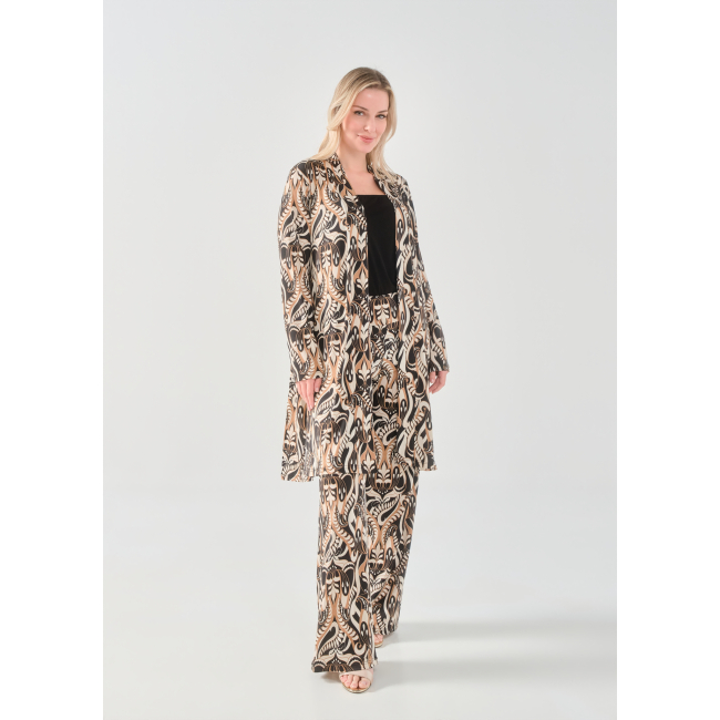 Ζακέτα/Μαντώ σε Jersey εμπριμέ ύφασμα, διακριτικό σκίσιμο στα πλαϊνά, σε ίσια πολύ άνετη γραμμή