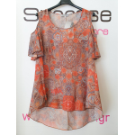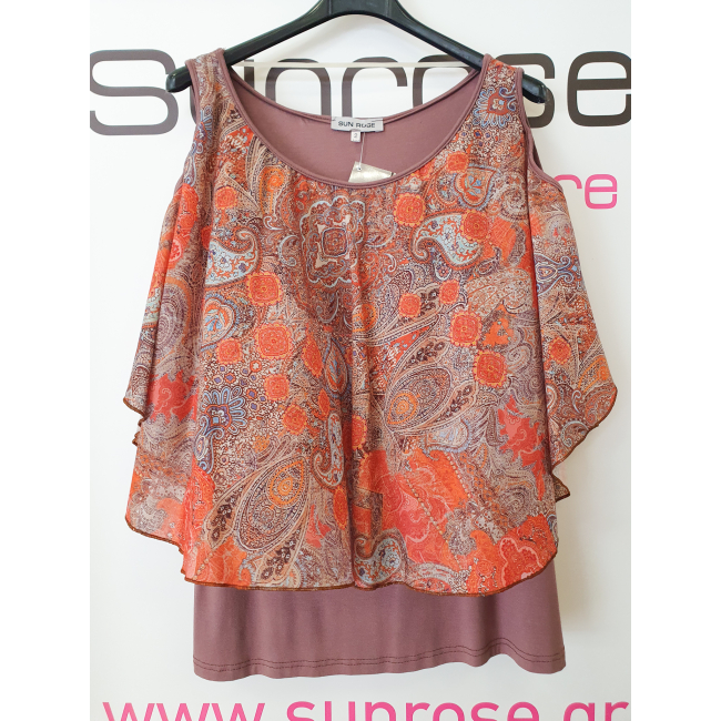 Μπλούζα με εμπριμέ βαμβακερο ύφασμα εξωτερικά και με ενσωματομένο jersey τοπ εσωτερικά > 15021 - 36,80€