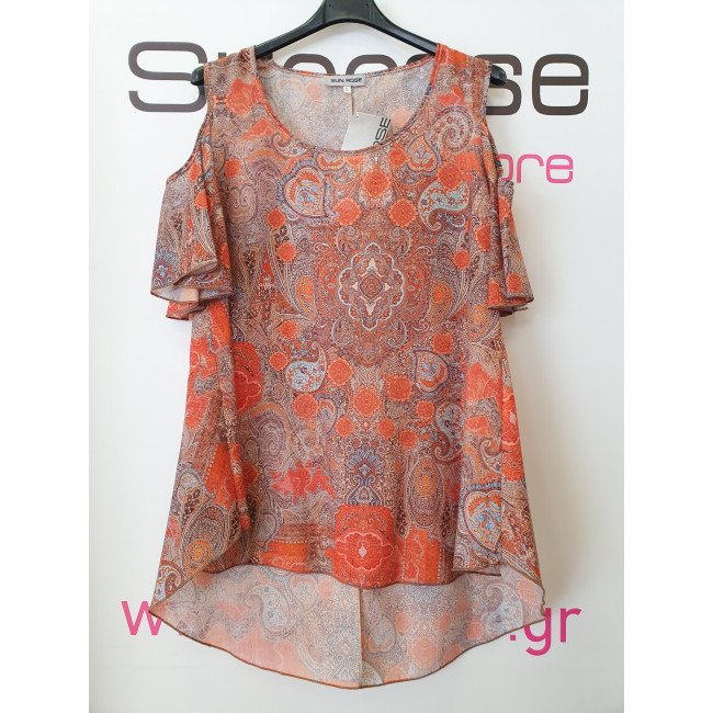Μπλούζα βαμβακερή, εμπριμέ, μανίκια με άνοιγμα στους ώμους, σε Α άνετη γραμμή > 15611 - 32,20€