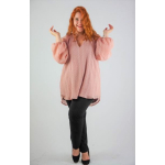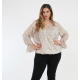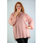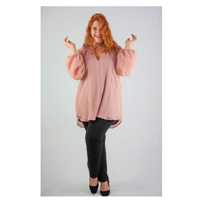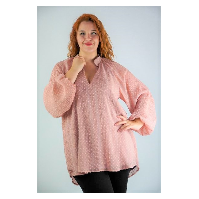 Μπλούζα ζορζέτα ανάγλυφη, Μάο γιακά, V ντεκολτέ, ρεγκλάν μανίκι με λάστιχο στο τελείωμα, σε ίσια γραμμή.